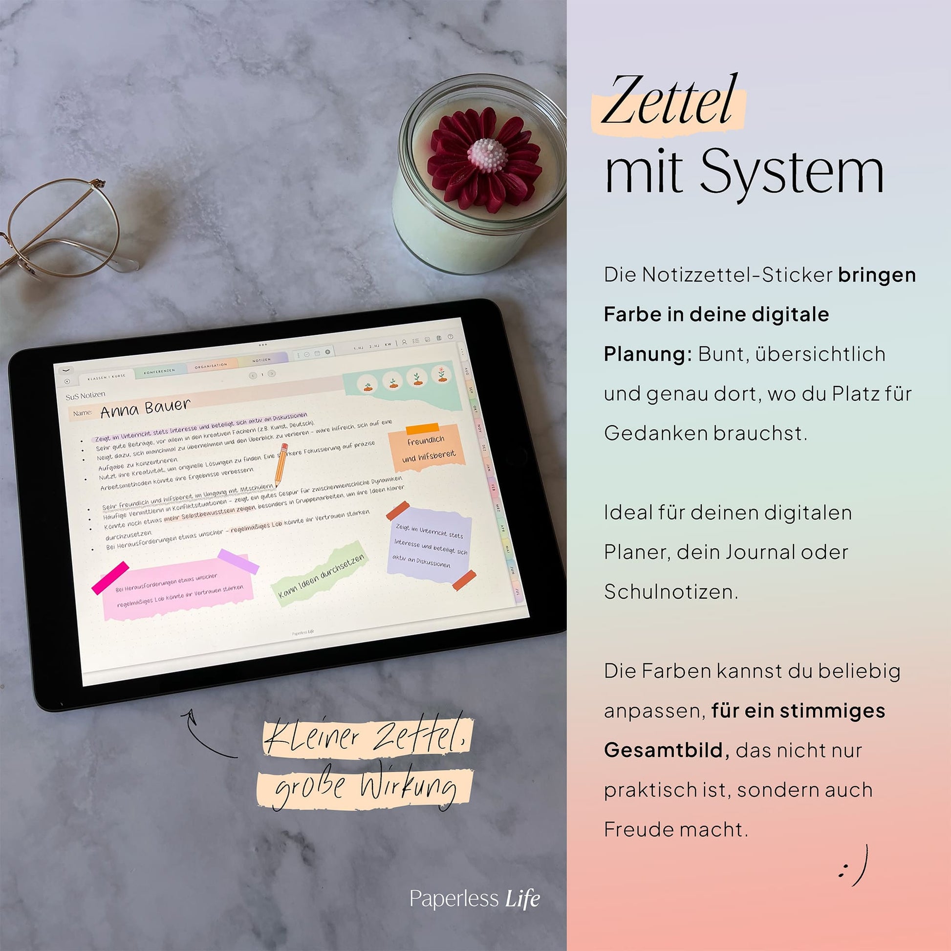 Zerrissen, kreativ & farbveränderbar – diese digitalen Notizzettel bringen Leben in deine GoodNotes-Seiten. Ideal für schnelle Gedanken, To-dos oder Deko mit Charakter.