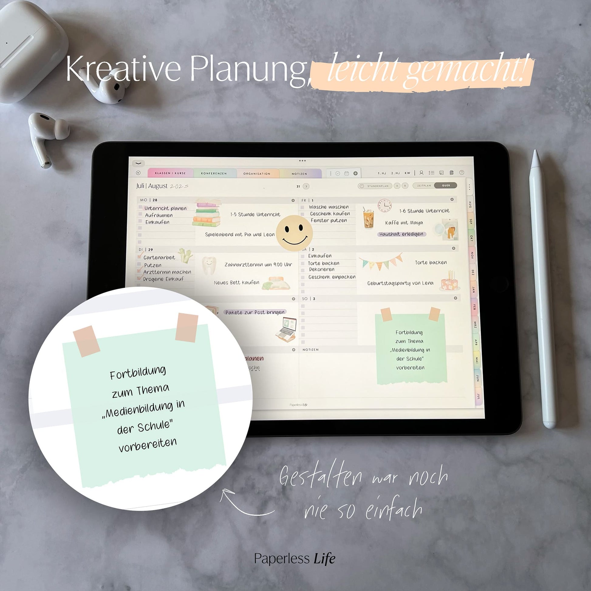💻 Tablet – Der Planer ist auch auf Laptop/PC und Smartphone nutzbar, jedoch für Tablets optimiert. Dabei muss es kein iPad sein – unsere Planer funktionieren ebenso auf anderen Tablets.
