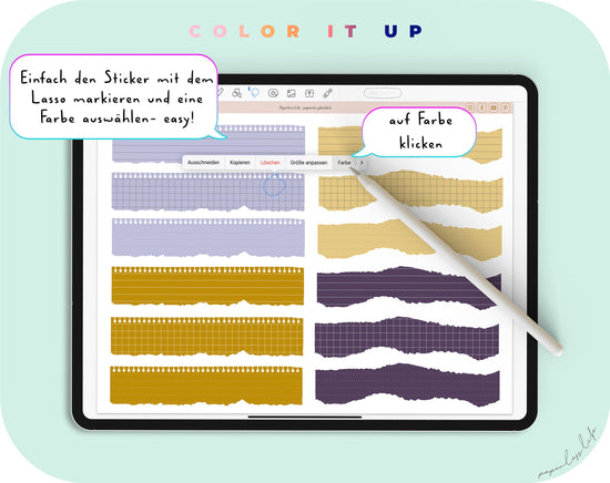 These Goodnotes torn paper color changing stickers are made to match your style, mood, and life! Whether you prefer a bold black or soft white ruling, each note adapts beautifully to any color palette.