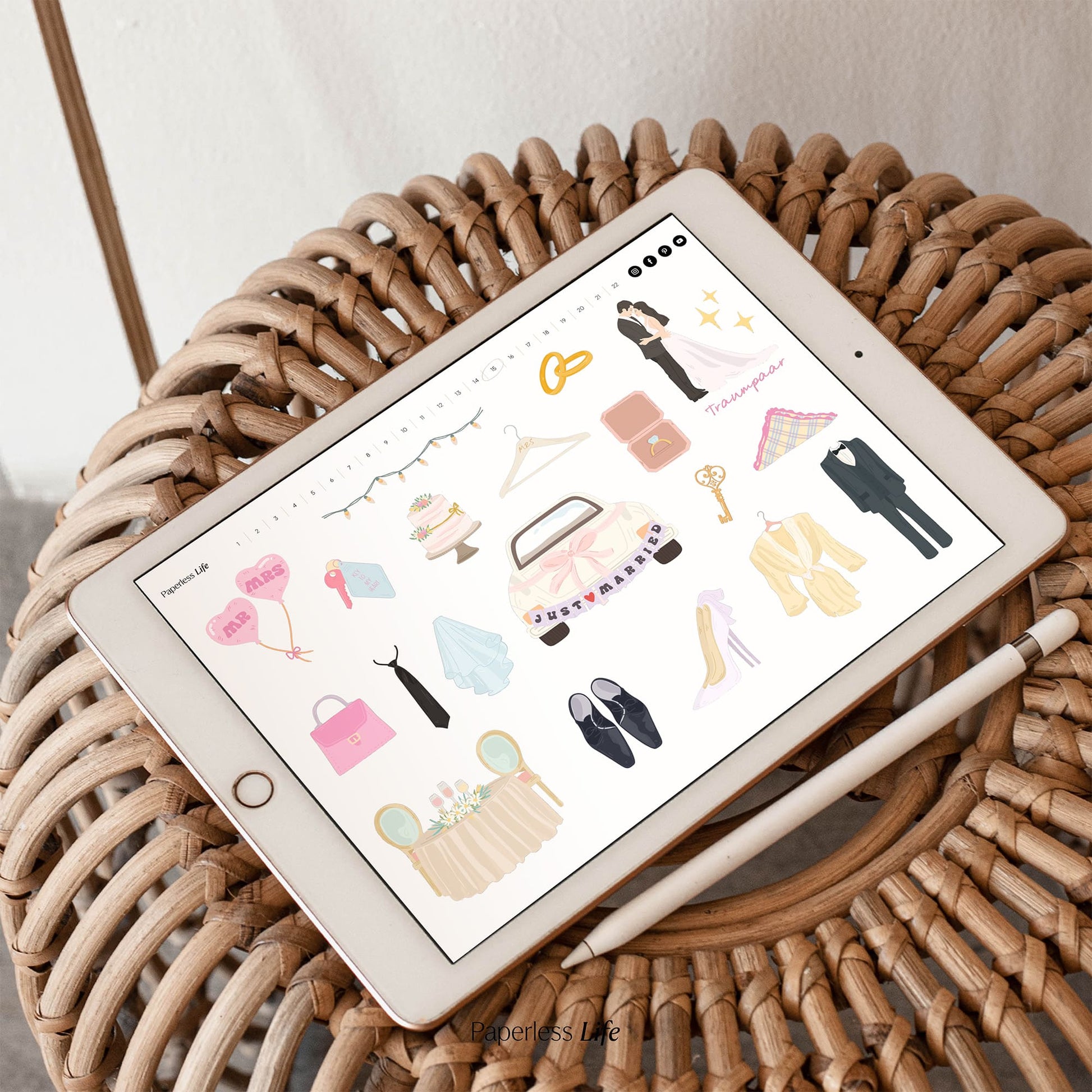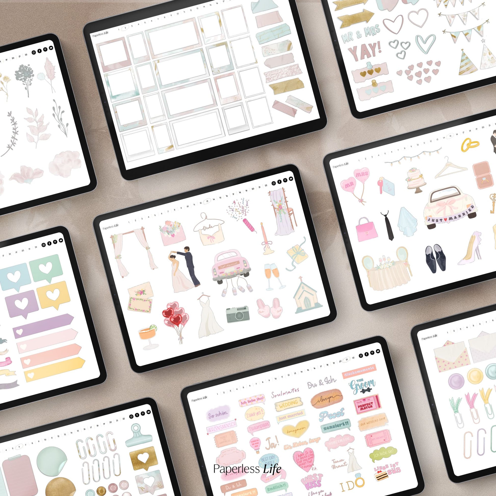 Falls du GoodNotes nutzt, kannst du das verlinkte Stickerbuch in GoodNotes öffnen und die Sticker einfach mit dem Lasso kopieren und in deinem digitalen Planer einfügen. Du kannst die Sticker aber auch mit anderen Notizen-Apps nutzen, wie Samsung Notes, Notability, Xodo usw.