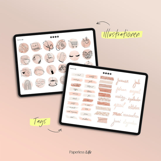 Falls du GoodNotes nutzt, kannst du das verlinkte Stickerbuch in GoodNotes öffnen und die Sticker einfach mit dem Lasso kopieren und in deinem digitalen Planer einfügen. Du kannst die Sticker aber auch mit anderen Notizen-Apps nutzen, wie Samsung Notes, Notability, Xodo usw.