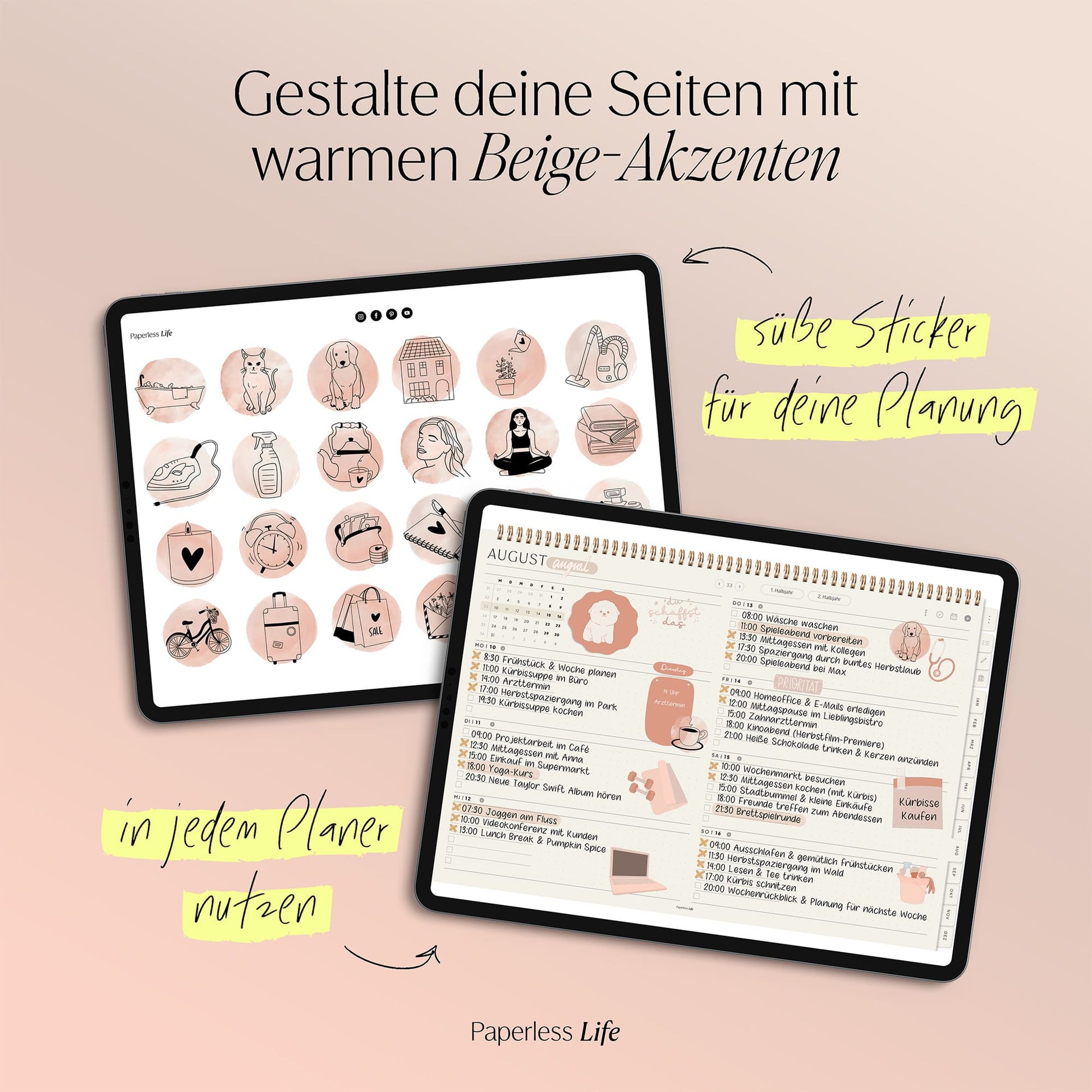 💻 Tablet – Der Planer ist auch auf Laptop/PC und Smartphone nutzbar, jedoch für Tablets optimiert. Dabei muss es kein iPad sein – unsere Planer funktionieren ebenso auf anderen Tablets.