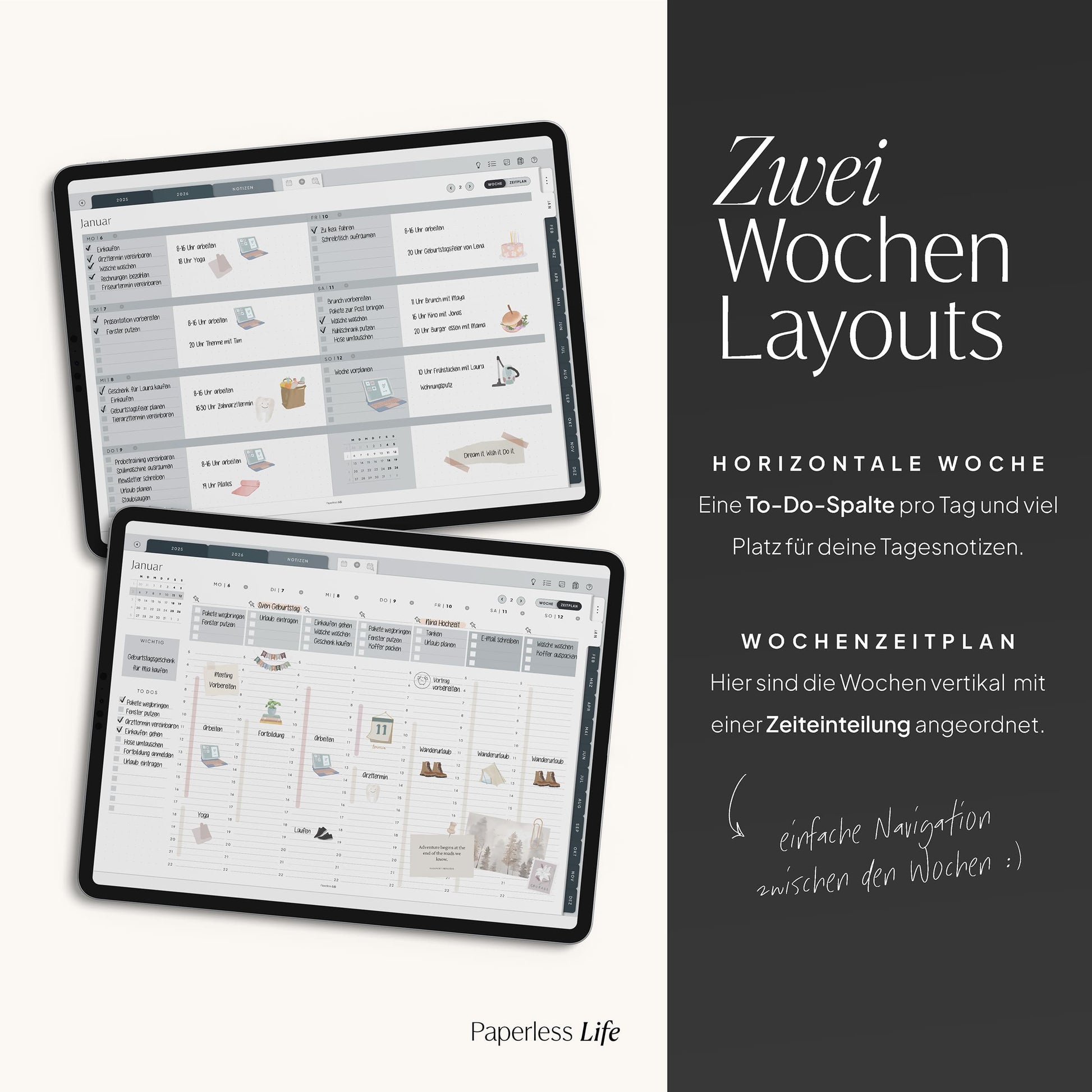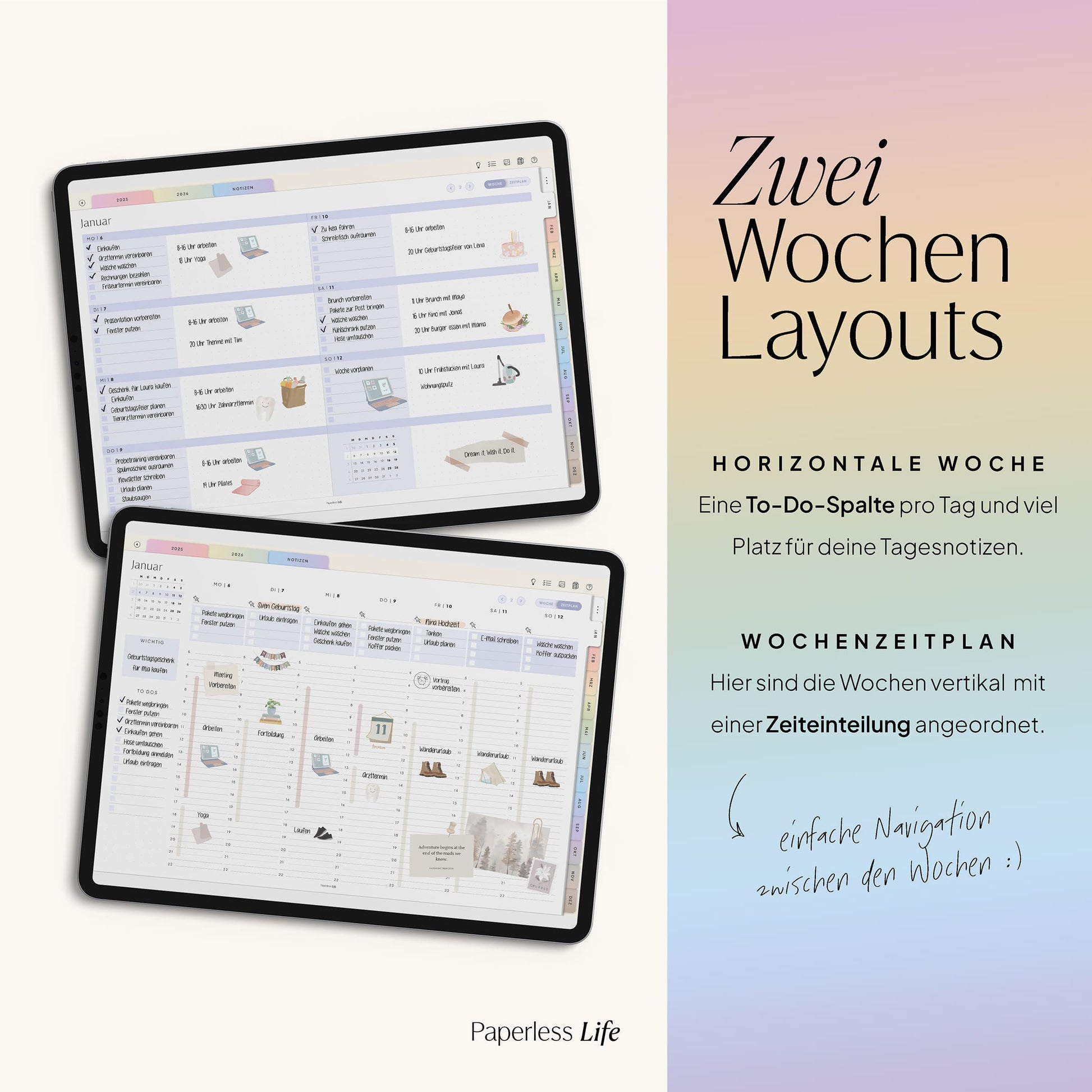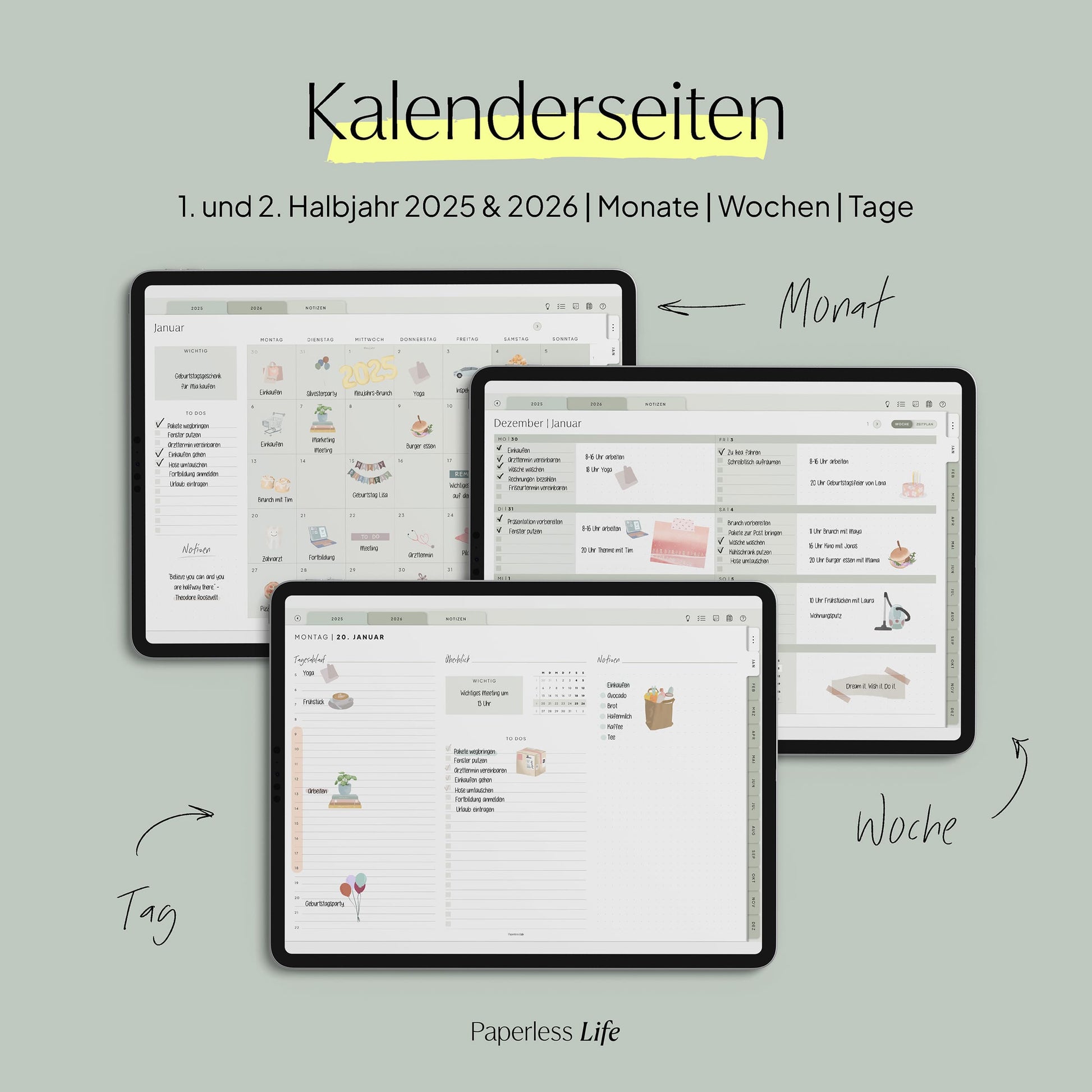 💻 Tablet – Der Planer ist auch auf Laptop/PC und Smartphone nutzbar, jedoch für Tablets optimiert. Dabei muss es kein iPad sein – unsere Planer funktionieren ebenso auf anderen Tablets.