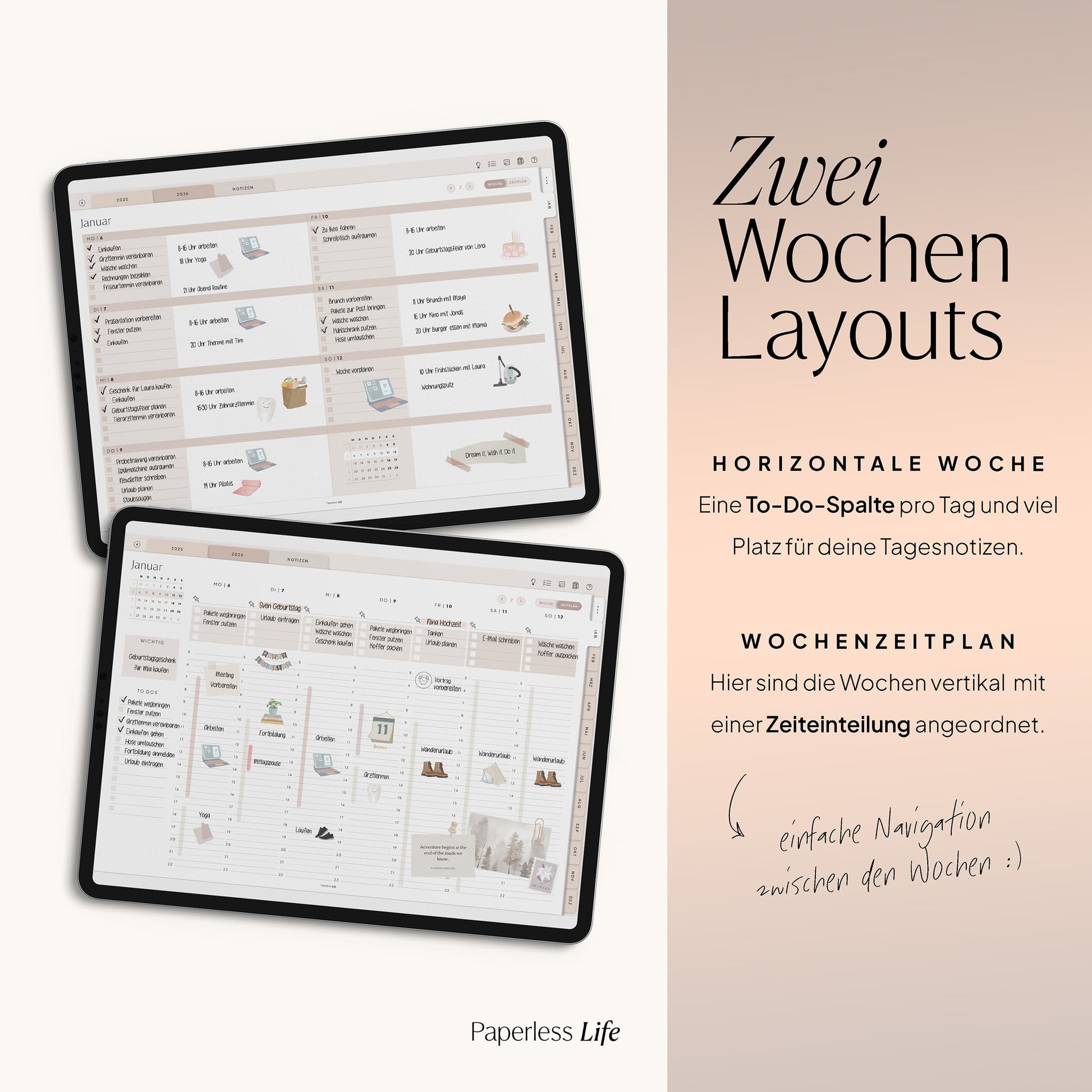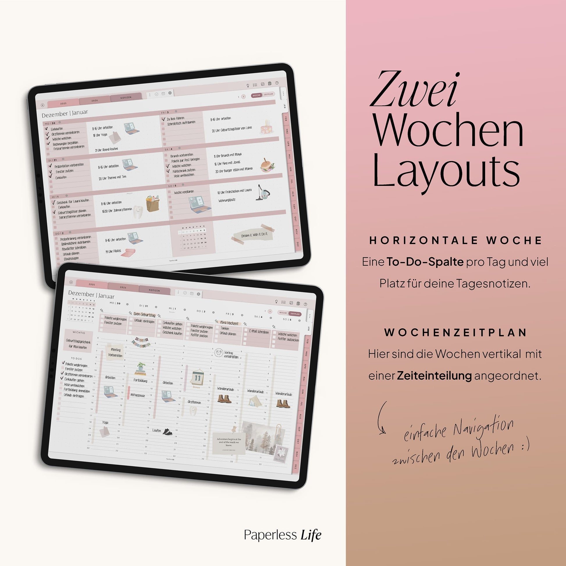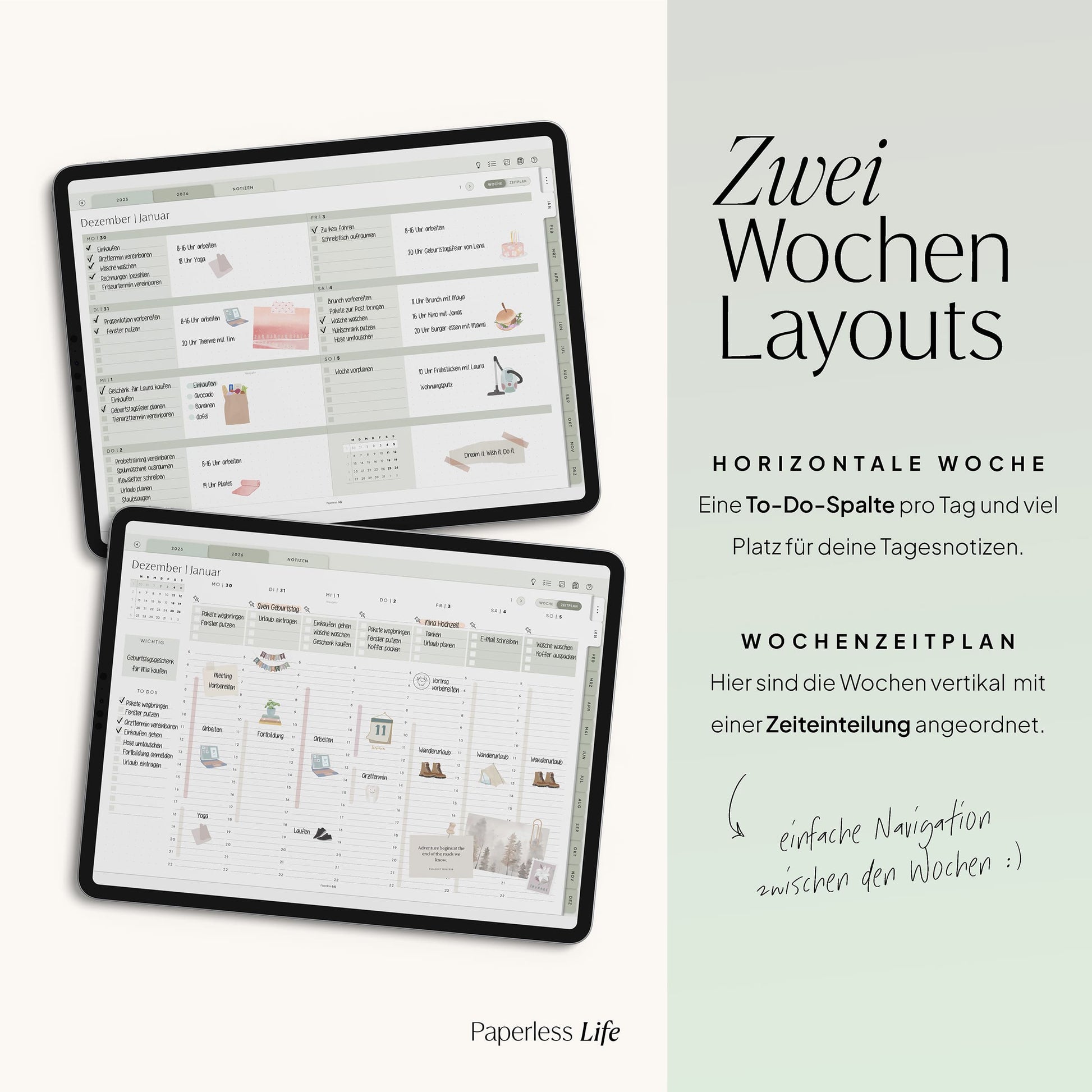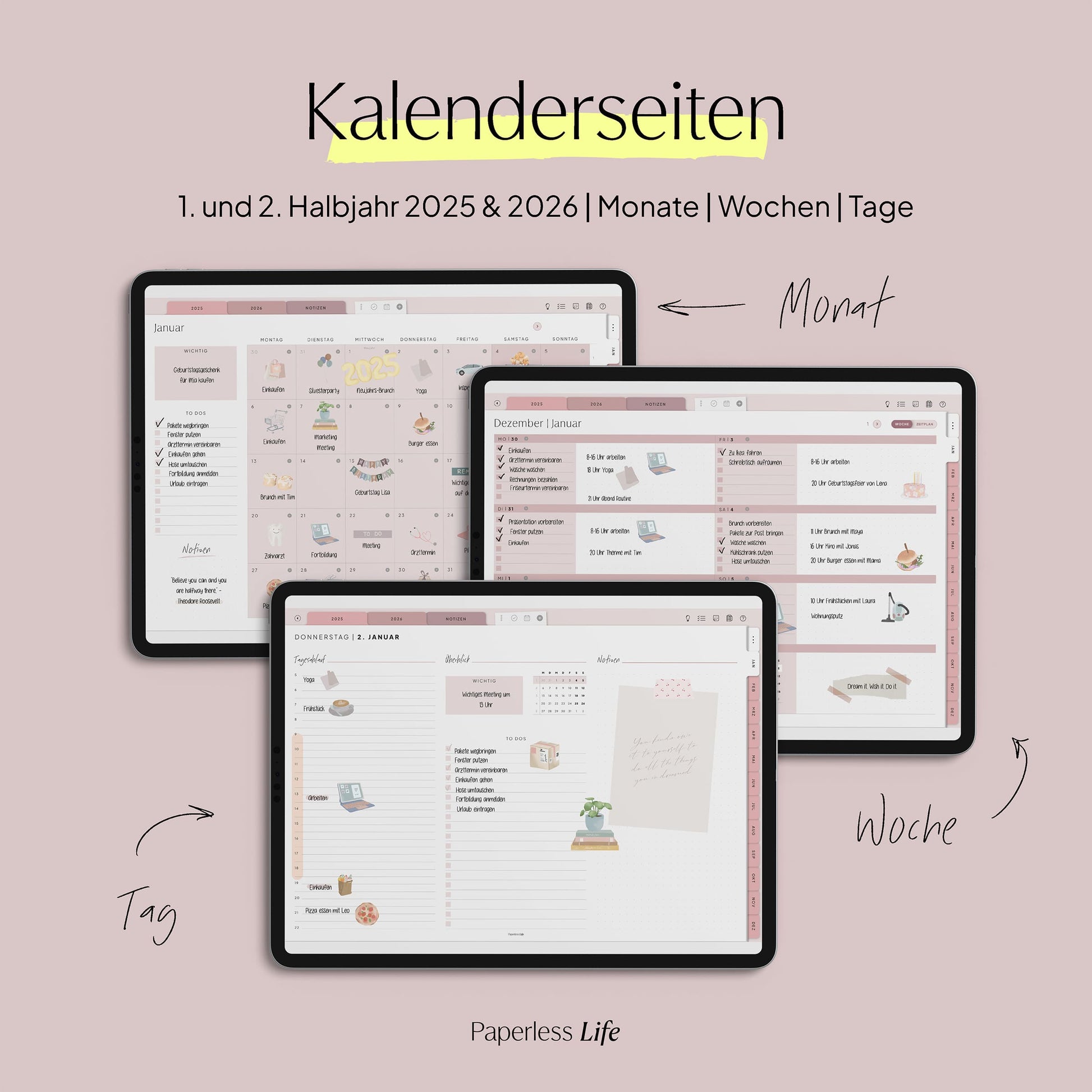💻 Tablet – Der Planer ist auch auf Laptop/PC und Smartphone nutzbar, jedoch für Tablets optimiert. Dabei muss es kein iPad sein – unsere Planer funktionieren ebenso auf anderen Tablets.