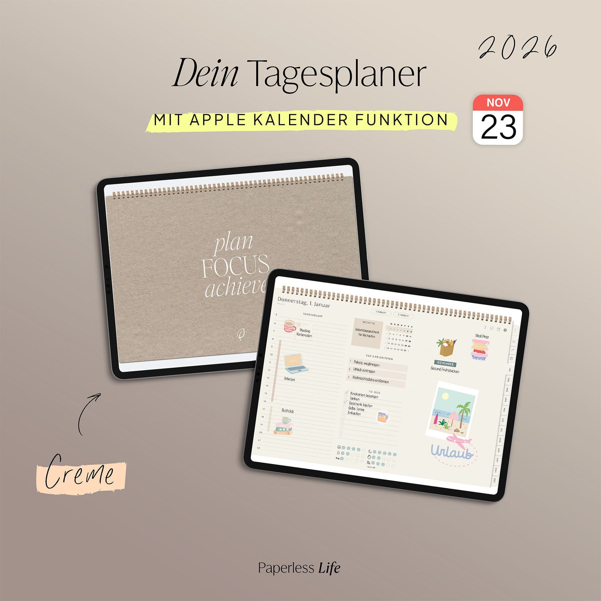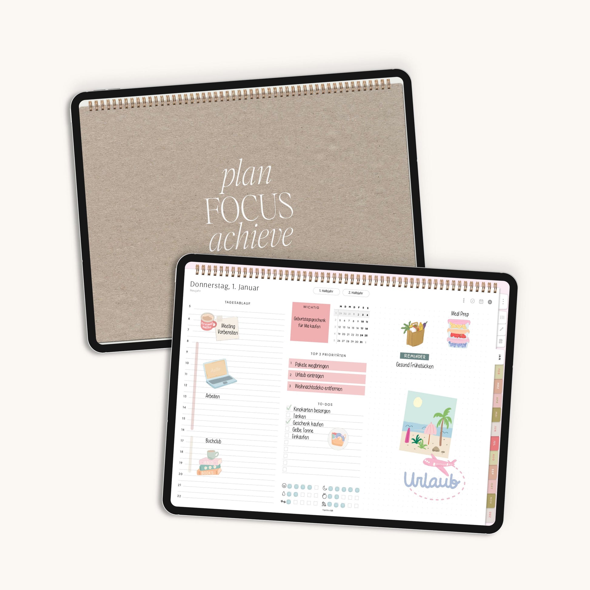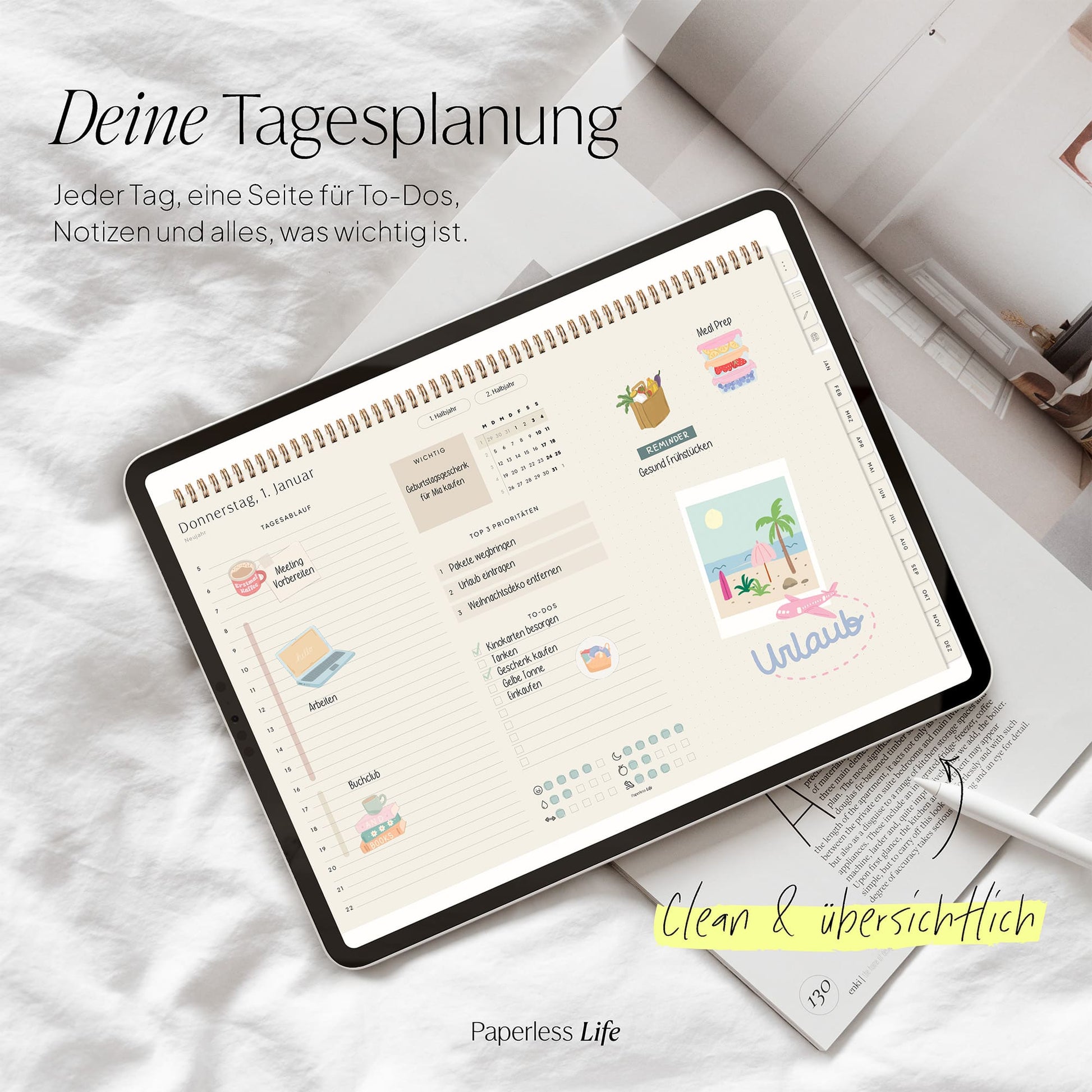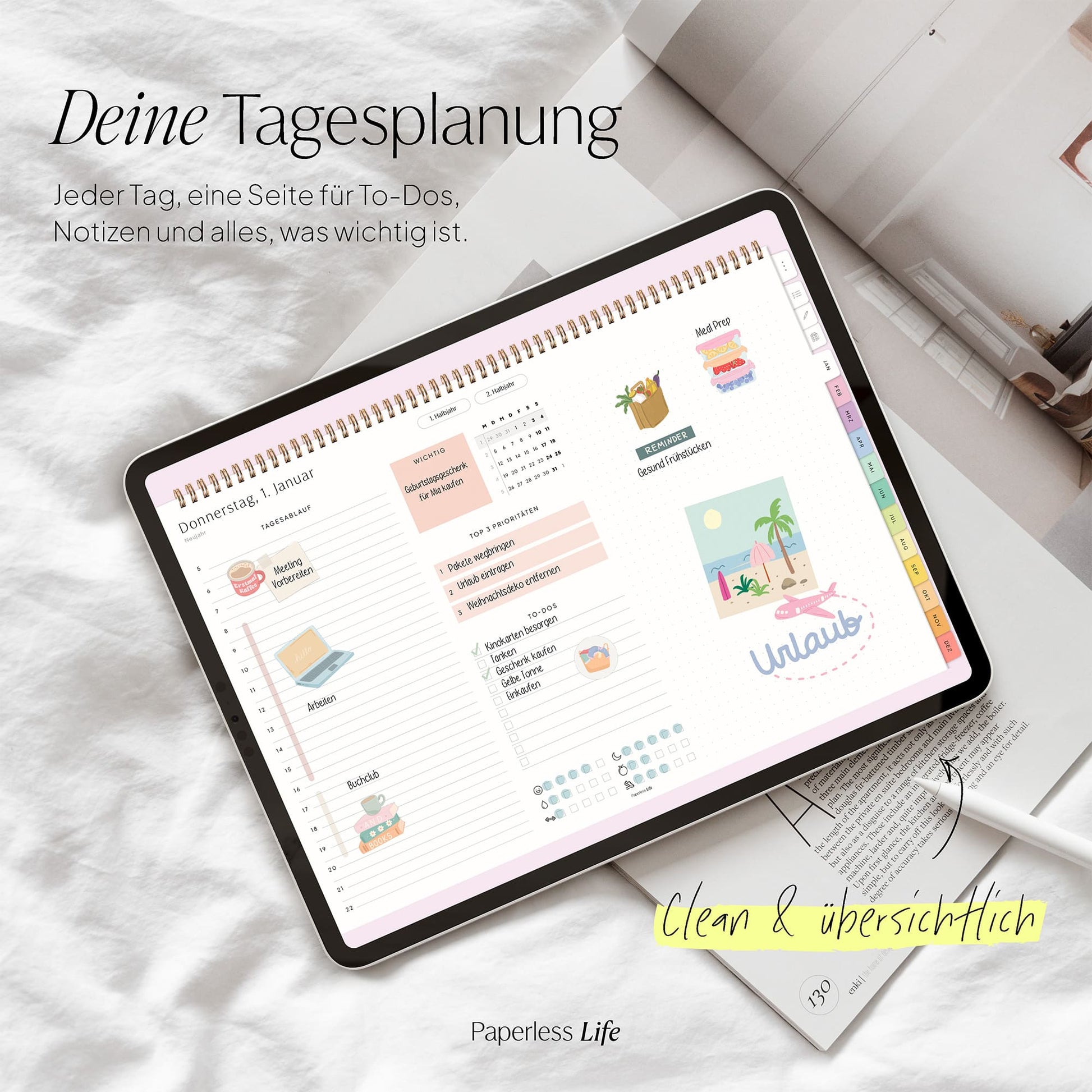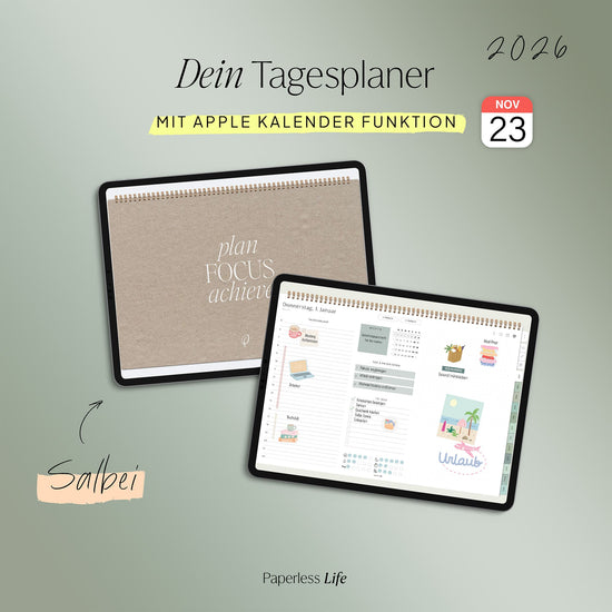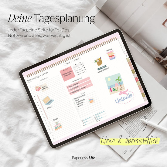 💻 Tablet – Der Planer ist auch auf Laptop/PC und Smartphone nutzbar, jedoch für Tablets optimiert. Dabei muss es kein iPad sein – unsere Planer funktionieren ebenso auf anderen Tablets.