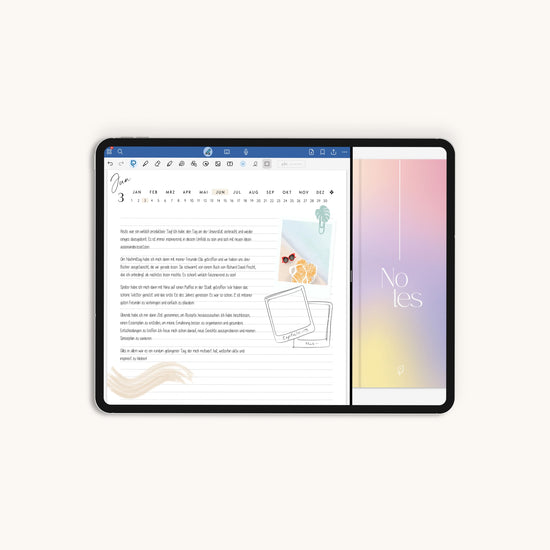 Ein digitales Notizbuch im Split View zu nutzen, eröffnet ganz neue Möglichkeiten: Du kannst gleichzeitig zwei Planer oder Notizbücher nebeneinander öffnen und so noch effizienter arbeiten. Das ist besonders praktisch, wenn du zum Beispiel einen Planer für die Terminplanung und ein Stickerbuch oder themenspezifisches Notizbuch parallel nutzen möchtest. Der übersichtliche Index bietet Platz für bis zu 10 Themen. Jede Themen-Seite ist verlinkt und kann beliebig oft dupliziert werden.