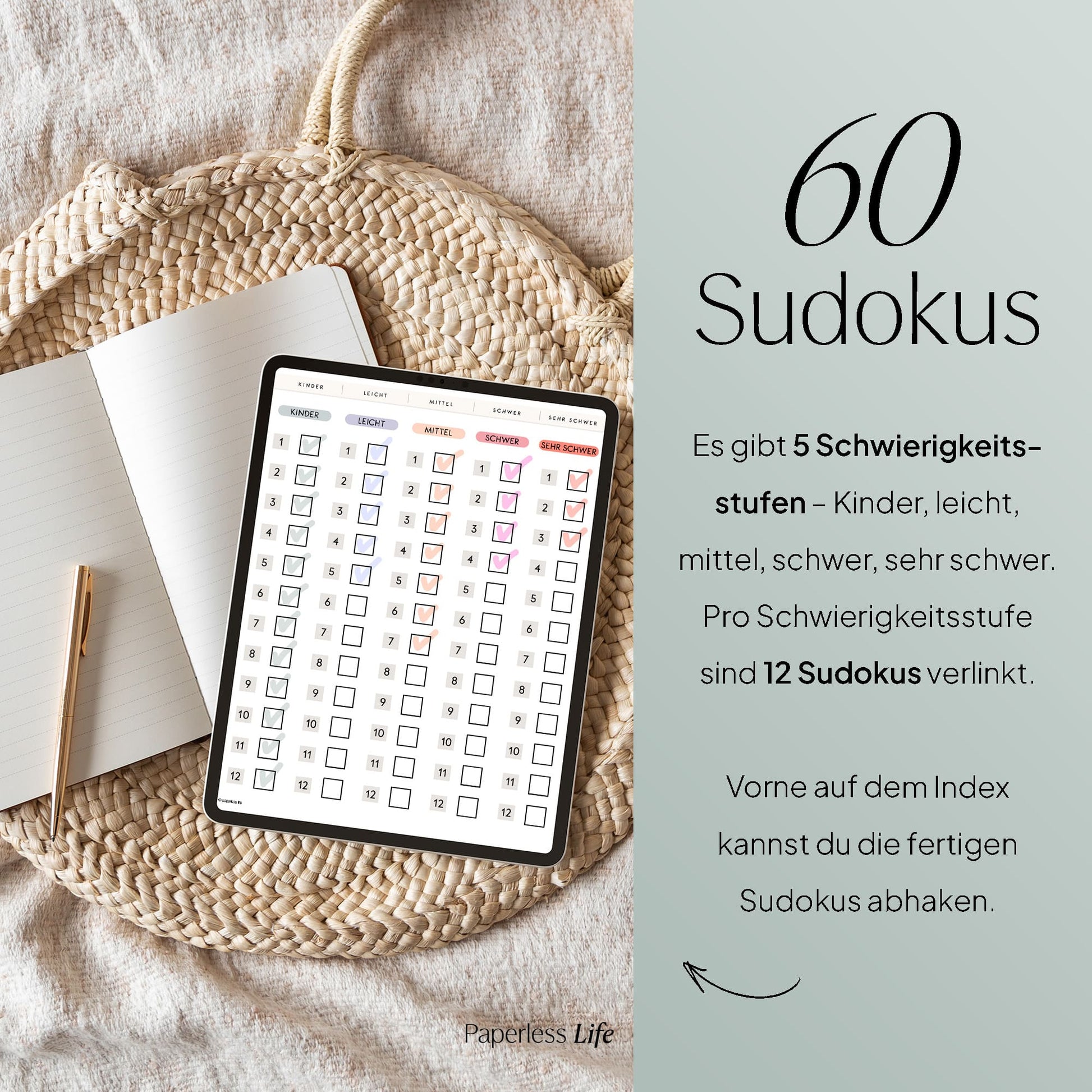 ▸ 60 Sudokus in einem übersichtlichen PDF-Format