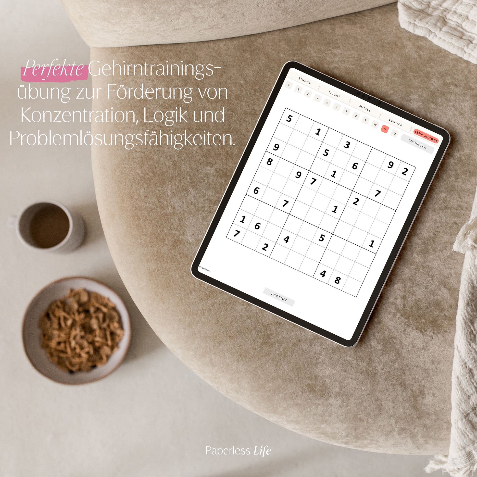 Sudoku-Fans aufgepasst! Mit diesem digitalen Sudoku-Heft hast du immer und überall spannende Rätsel parat – egal ob auf dem Tablet, iPad oder Laptop. Perfekt für eine kleine Denksportpause zwischendurch oder als tägliche Herausforderung.