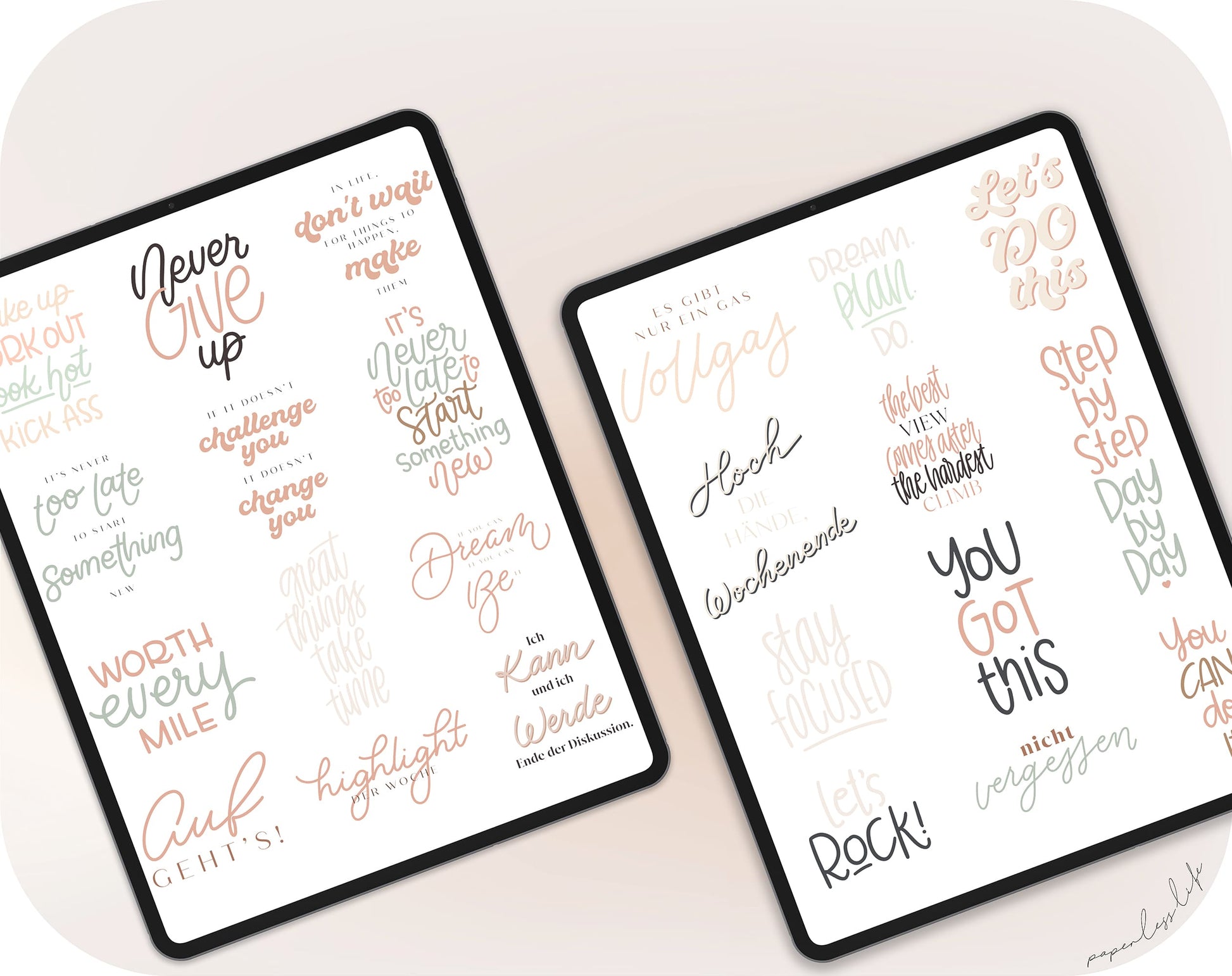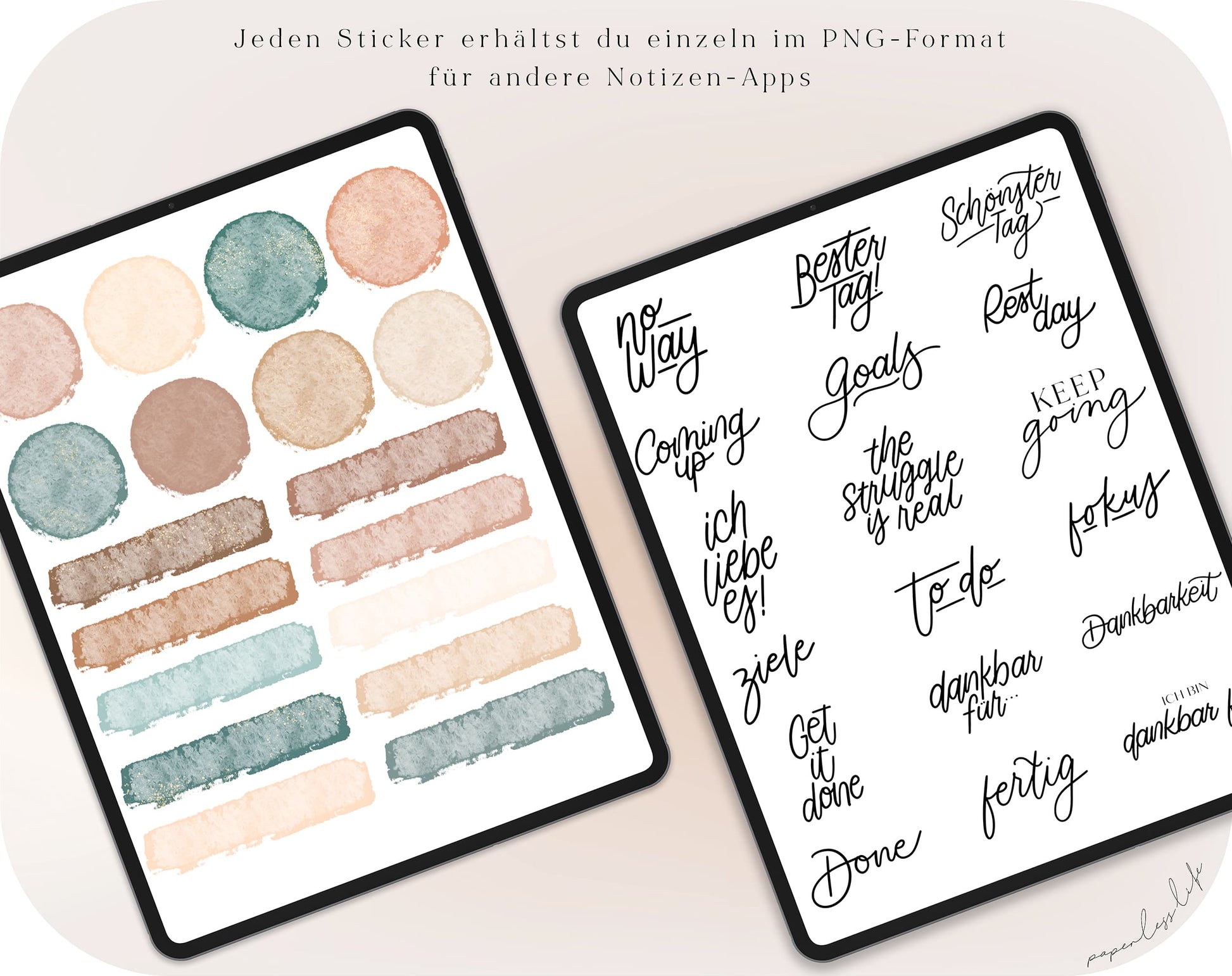 Use these digital stickers for your digital calendar or even for your Instagram story. The motivational stickers are all hand-drawn and handwritten. You'll receive a .goodnotes file with all the stickers, which you can easily copy and paste into GoodNotes using the Lasso tool. You'll also receive each sticker individually in PNG format for other note-taking apps.