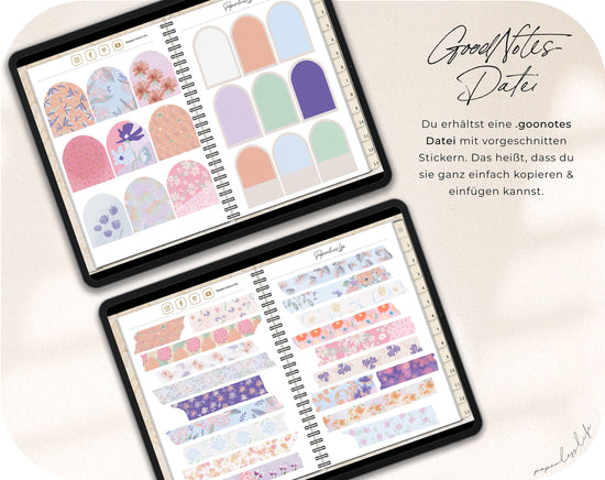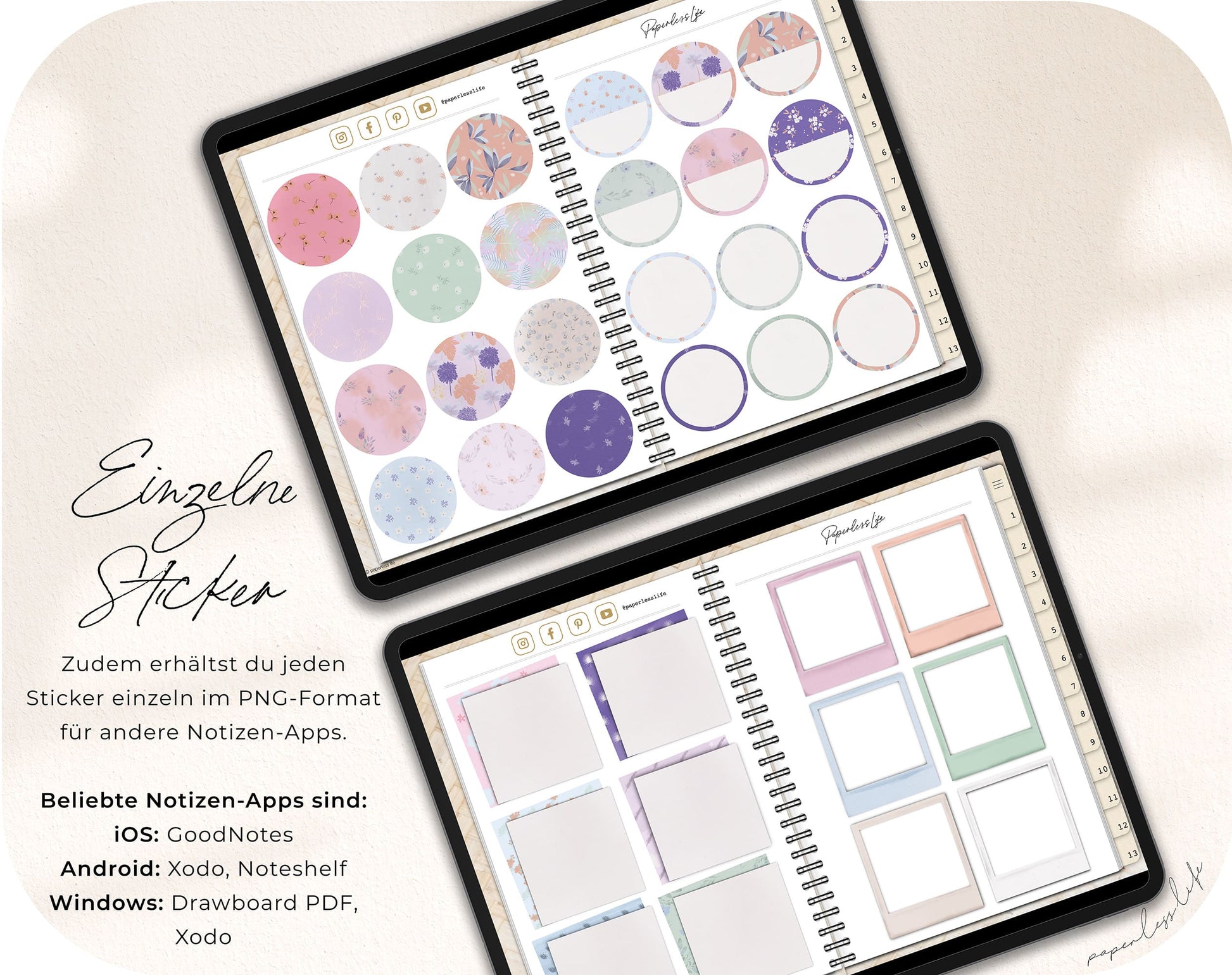 If you're a GoodNotes user, you can open the linked sticker book in GoodNotes and simply copy and paste the pre-cropped stickers using the Lasso tool. However, you can also use the stickers with other note-taking apps.