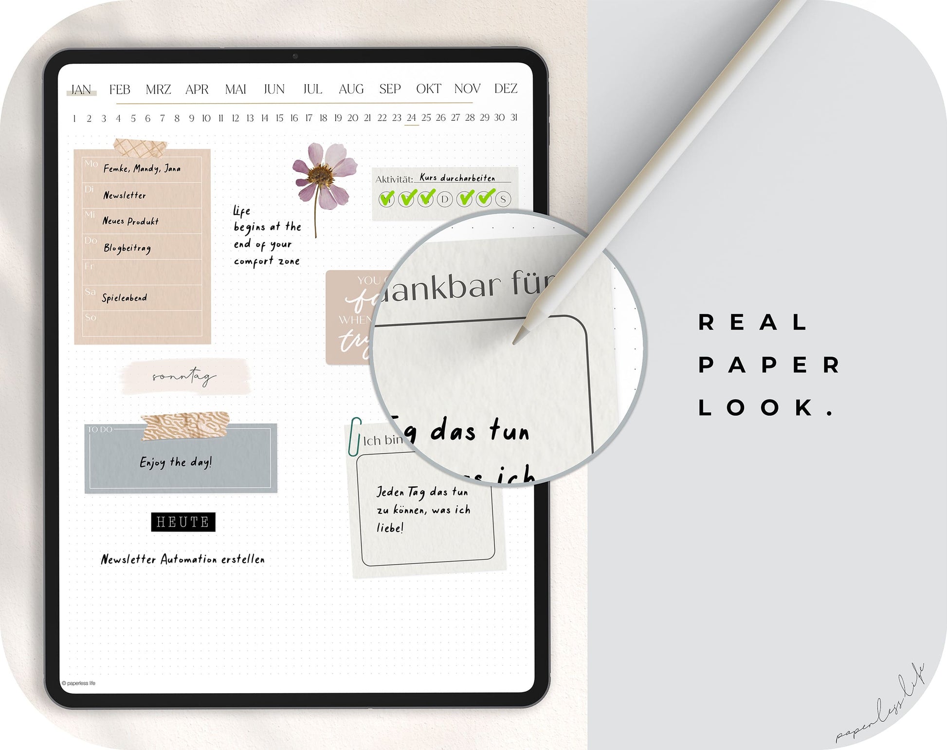 💻 Tablet – The planner can also be used on laptops/PCs and smartphones, but is optimized for tablets. It doesn't have to be an iPad—our planners work on other tablets as well.