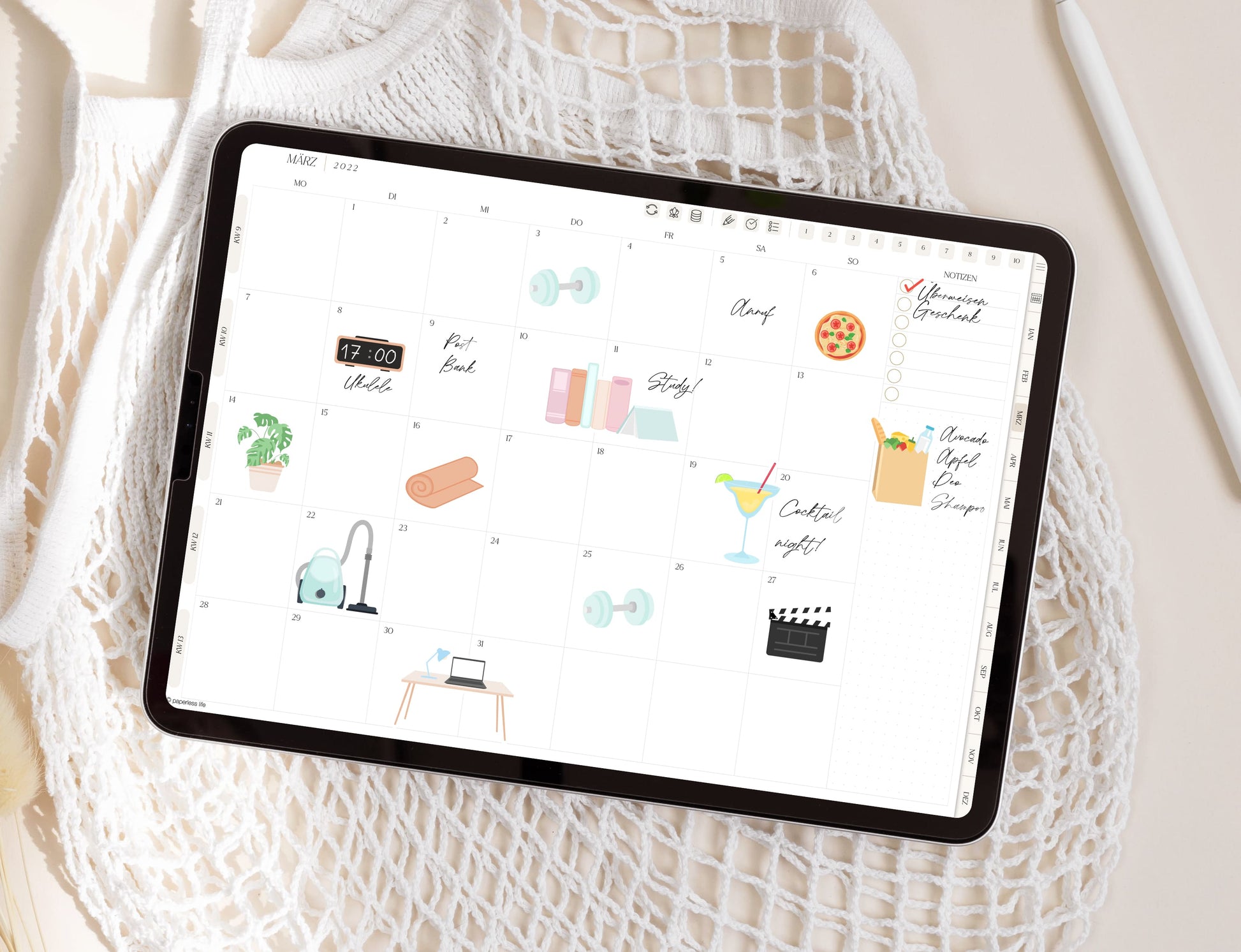 Here's how the calendar feature works: Create an appointment for your Apple Calendar directly in the digital planner or add a new task to the Reminders app. View all upcoming appointments and tasks in the digital planner.
