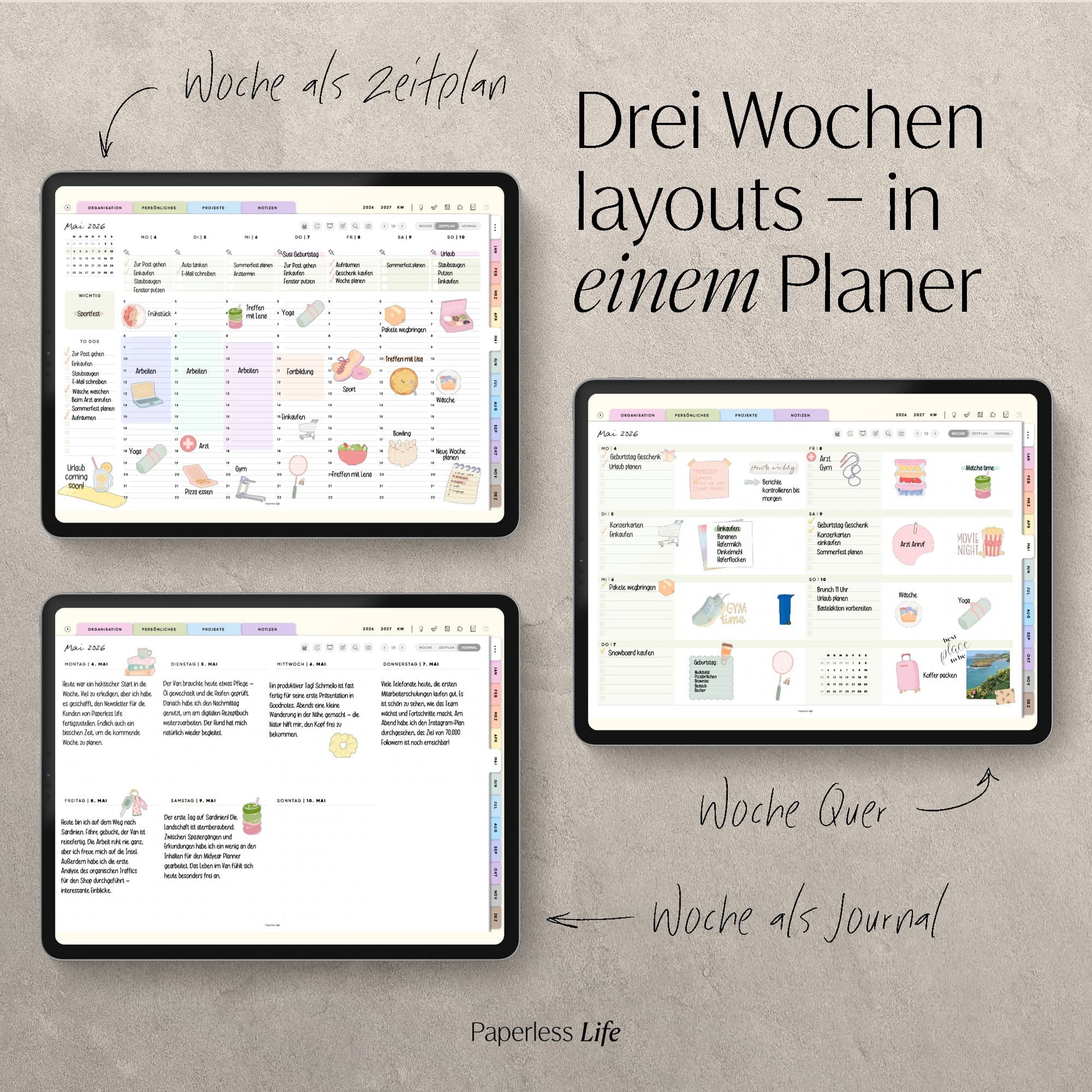 💻 Tablet – The planner can also be used on laptops/PCs and smartphones, but is optimized for tablets. It doesn't have to be an iPad—our planners work on other tablets as well.