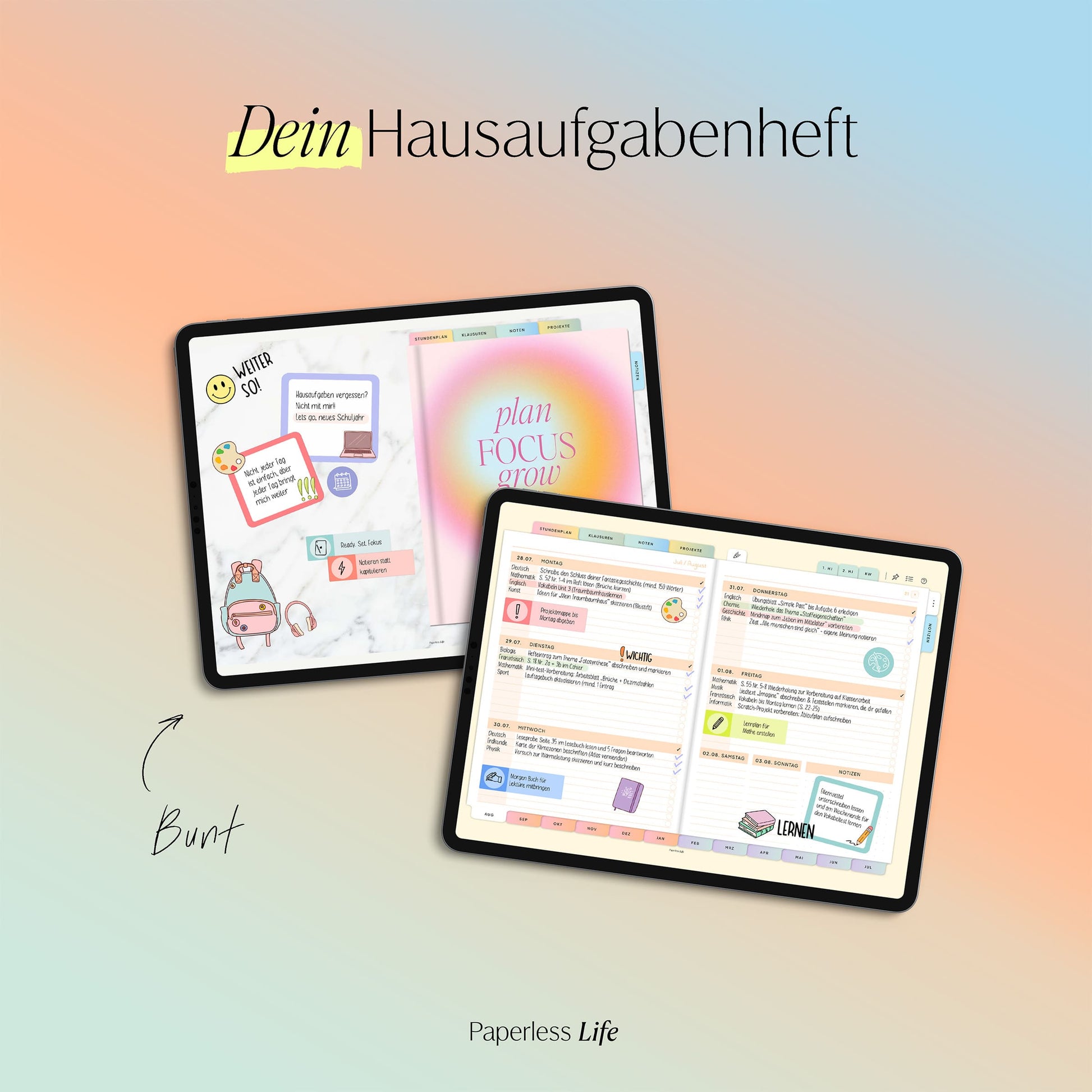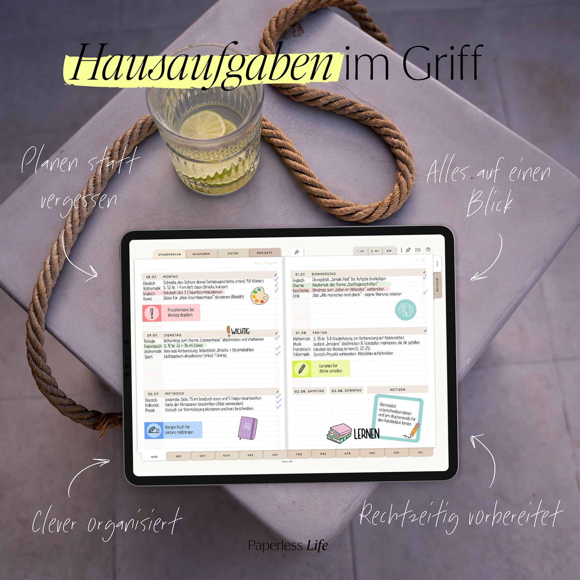 The digital homework book is your smart school companion: jot down tasks, keep track of deadlines, and never forget anything again. Simply open it on your tablet – for more clarity, structure, and less stress in your school day. Ideal for Goodnotes and other apps – without the messy paperwork.