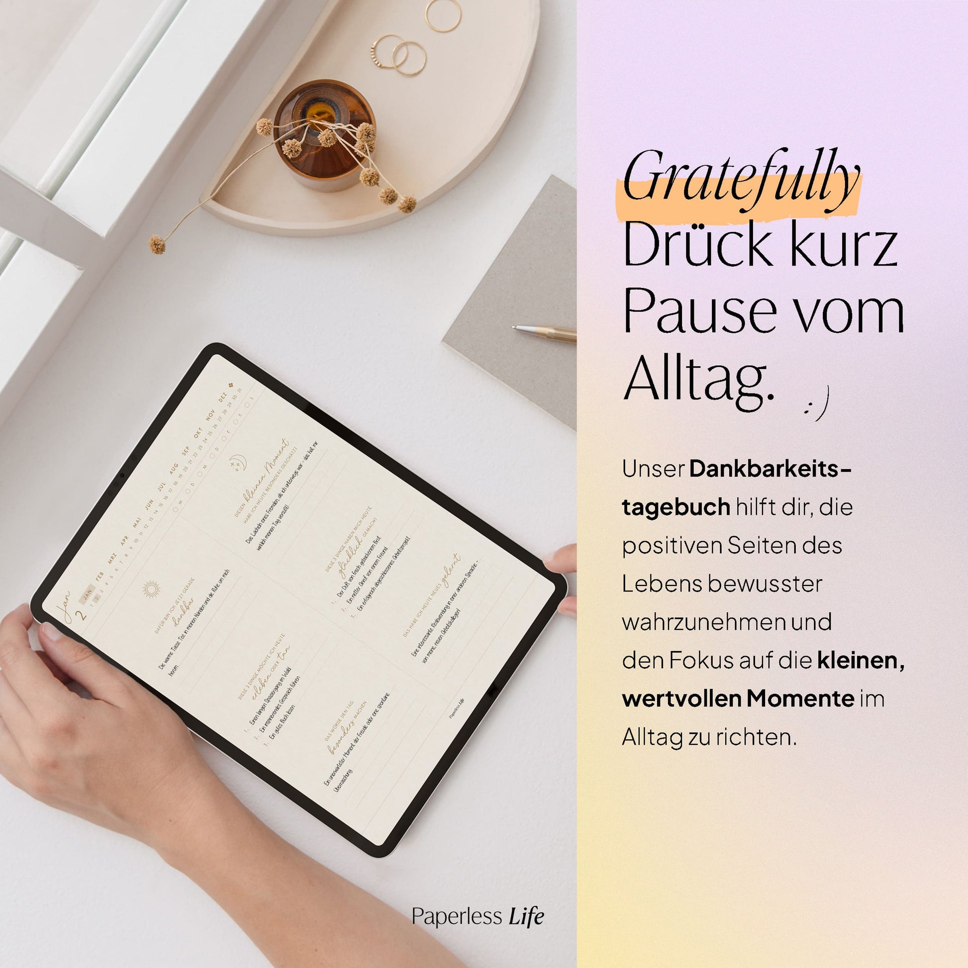 The Gratefully is our gratitude journal that helps you become more aware of the positive aspects of life and focus on the small, precious moments in everyday life.