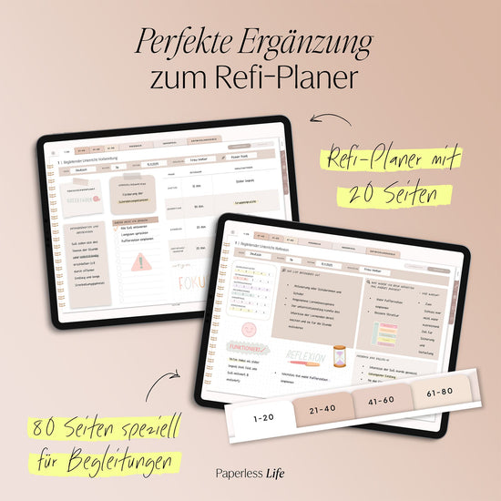 Im Refi-Planer findest du ebenfalls Seiten für den begleitenden Unterricht – allerdings nur 20 Doppelseiten. Hast du in deinem Bundesland mehr begleitenden Unterricht oder möchtest die übersichtlich in einem Heft führen, eignet sich das separate Heft als perfekte Ergänzung zum Refi-Planer. Natürlich kannst du es auch unabhängig davon nutzen, falls du den Refi-Planer nicht benötigst.