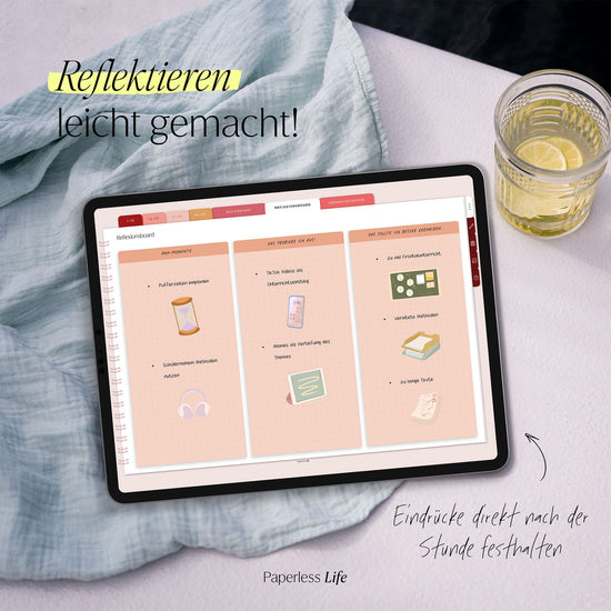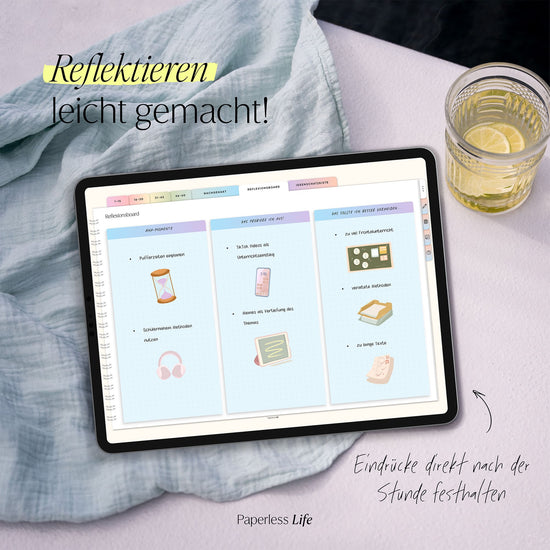 Notiere dir Aha-Momente, probiere neue Methoden aus und analysiere, warum etwas nicht gut verlief. Das Reflexionsboard bietet dir dafür reichlich Platz.