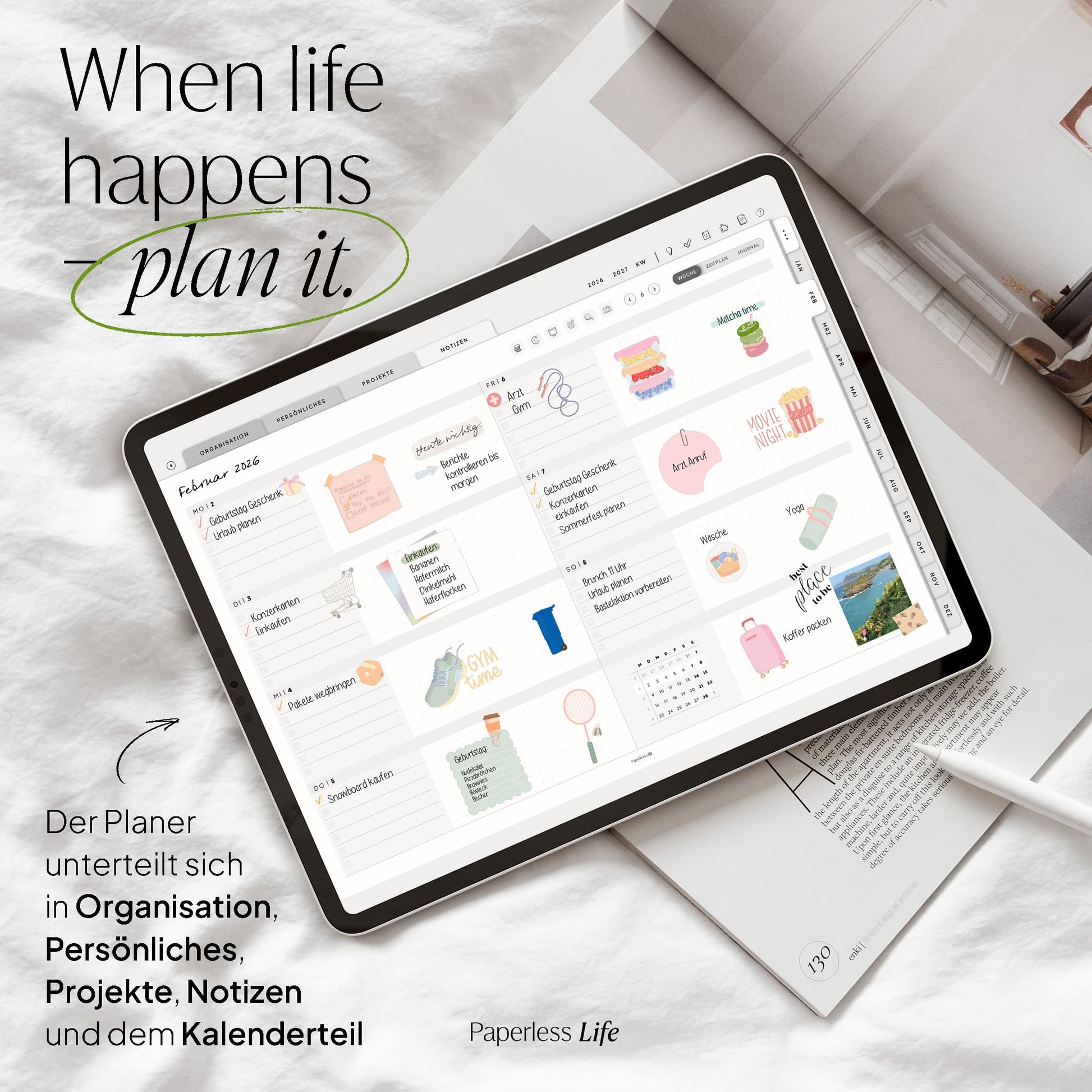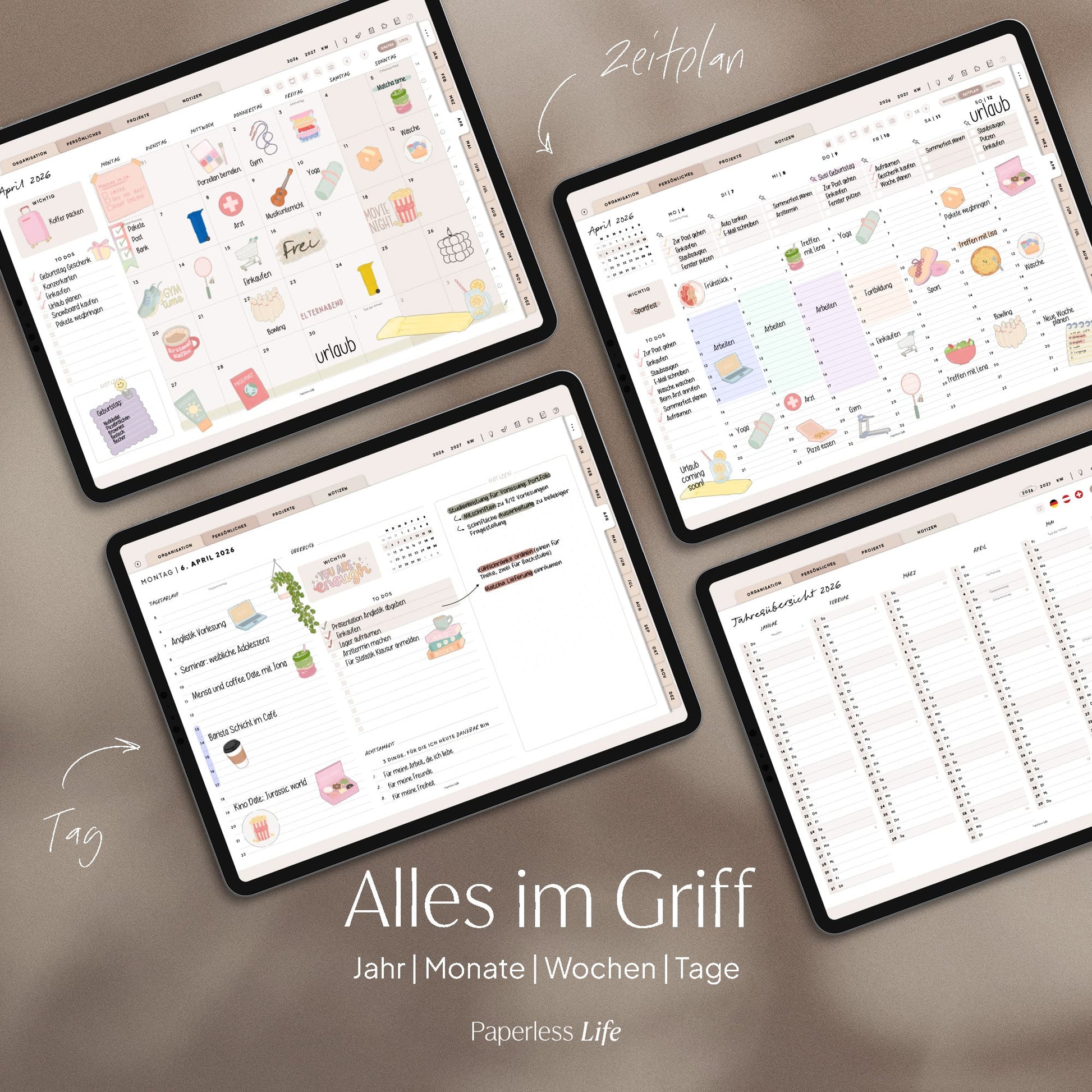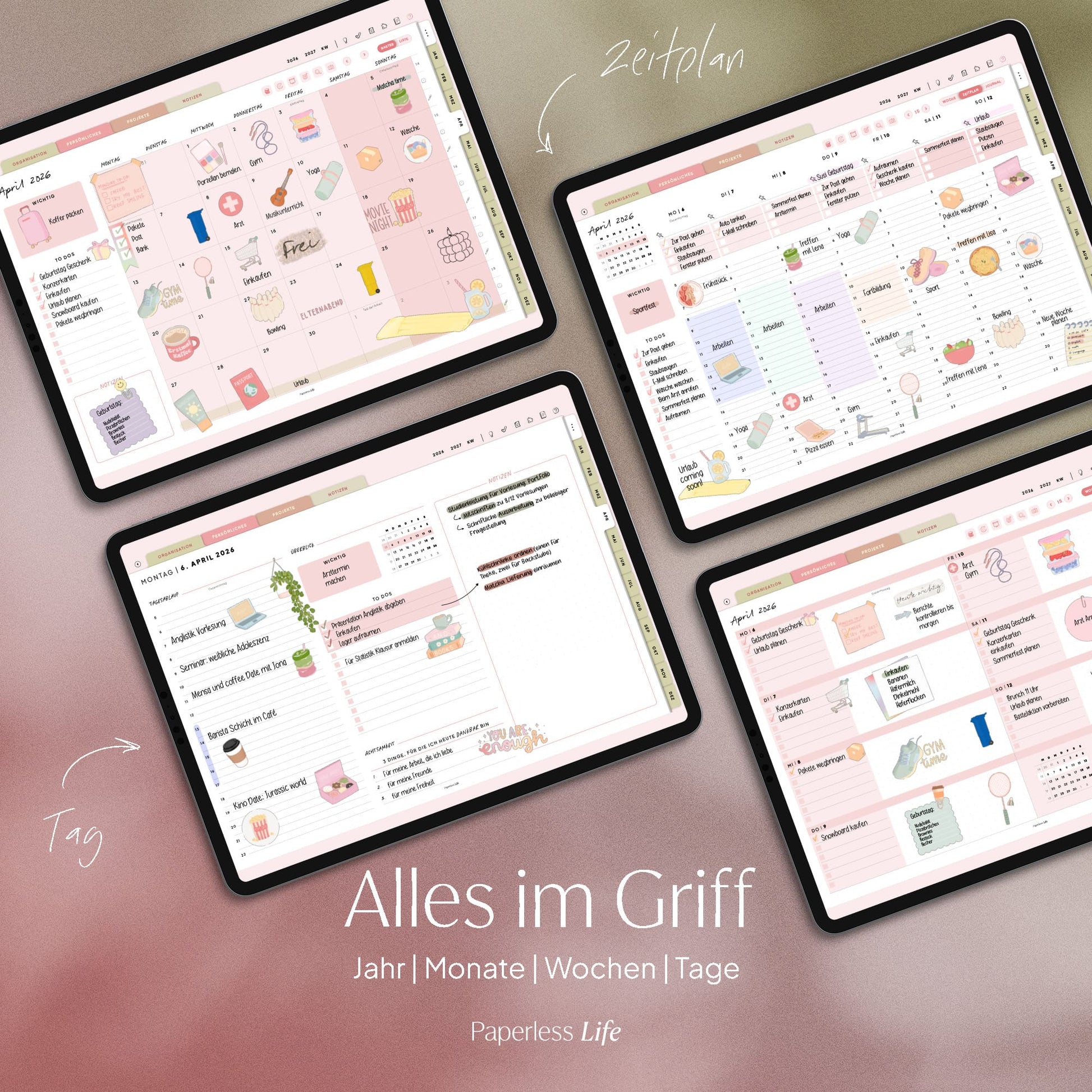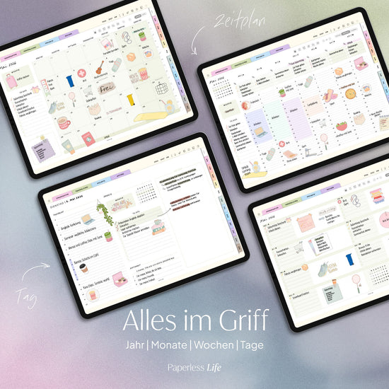 💻 Tablet – Der Planer ist auch auf Laptop/PC und Smartphone nutzbar, jedoch für Tablets optimiert. Dabei muss es kein iPad sein – unsere Planer funktionieren ebenso auf anderen Tablets.