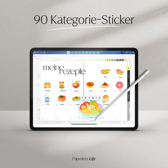 Dieses digitale Rezeptbuch bietet dir maximale Flexibilität bei der Organisation deiner Rezepte. Während andere Rezeptbücher feste Kategorien vorgeben, kannst du hier selbst entscheiden, wie du dein Buch gestalten möchtest. Dank der beiliegenden digitalen Sticker passt du die Kategorien ganz nach deinem Geschmack an.