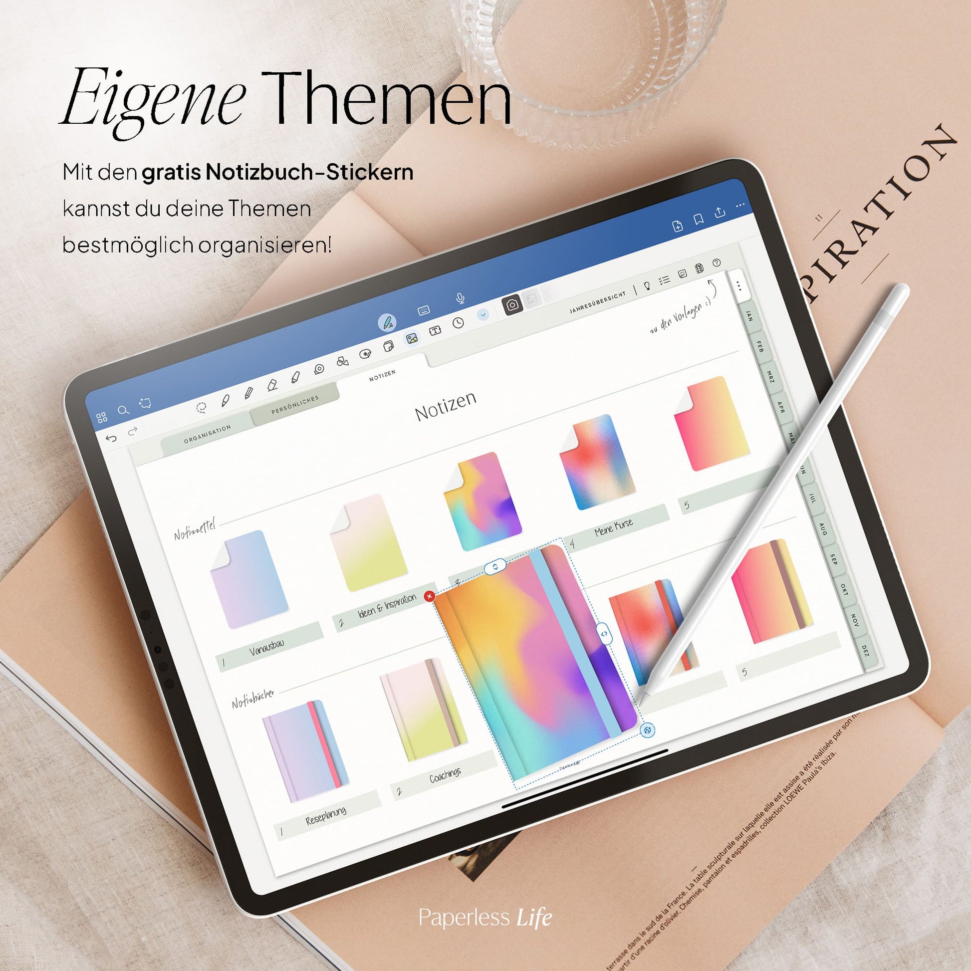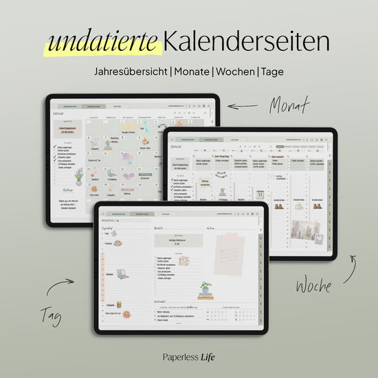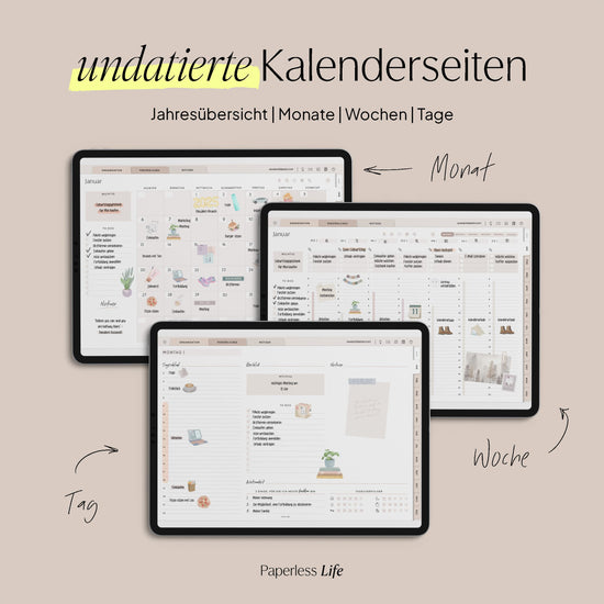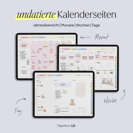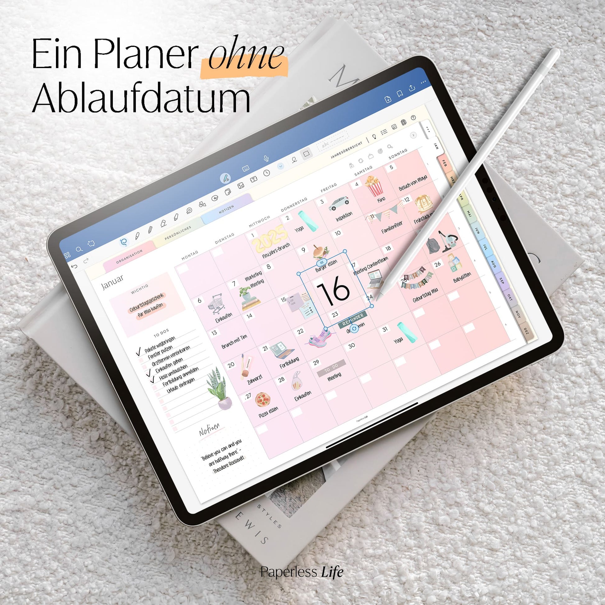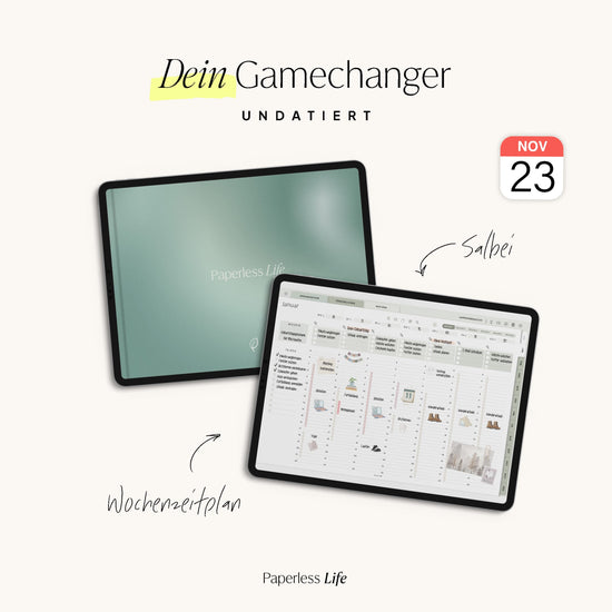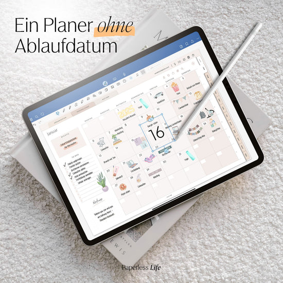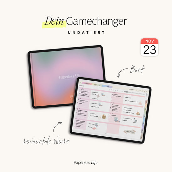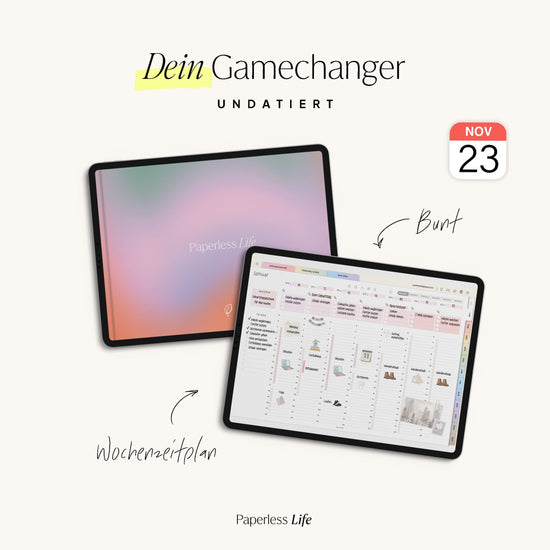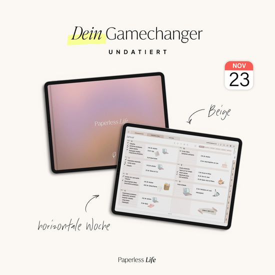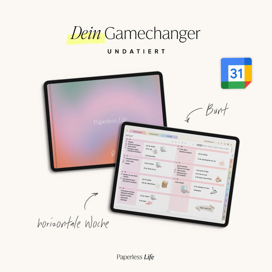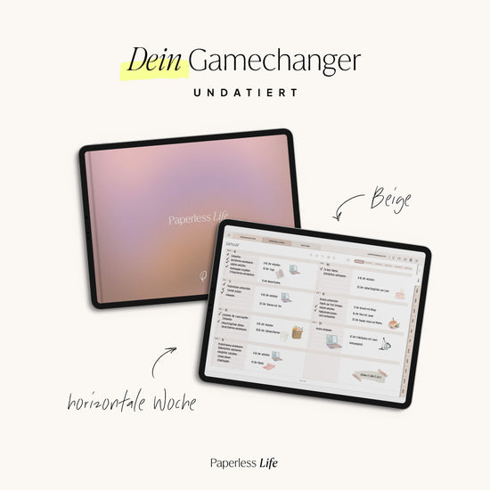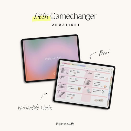 💻 Tablet – Der Planer ist auch auf Laptop/PC und Smartphone nutzbar, jedoch für Tablets optimiert. Dabei muss es kein iPad sein – unsere Planer funktionieren ebenso auf anderen Tablets.