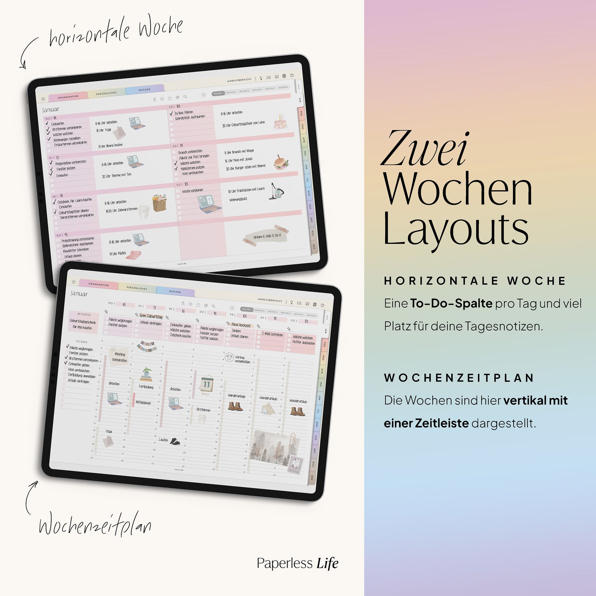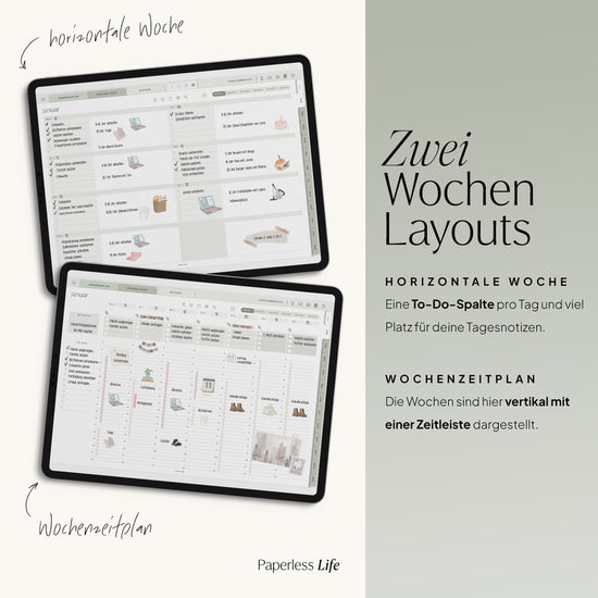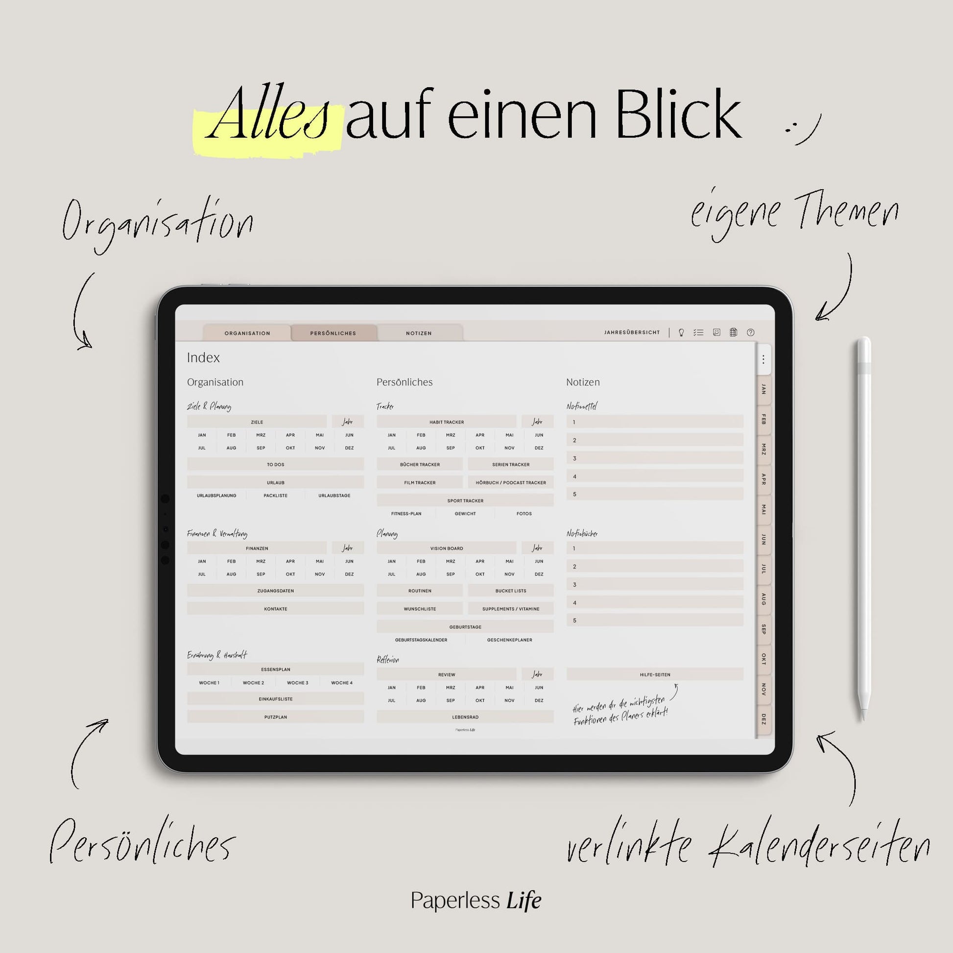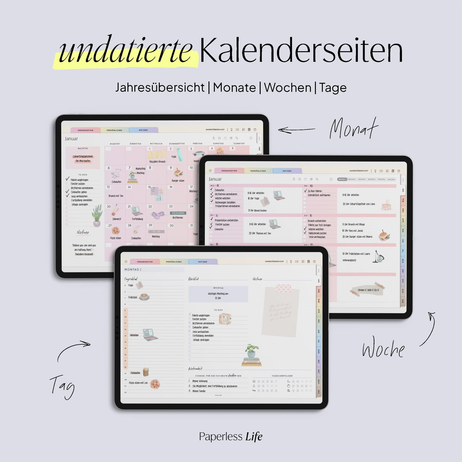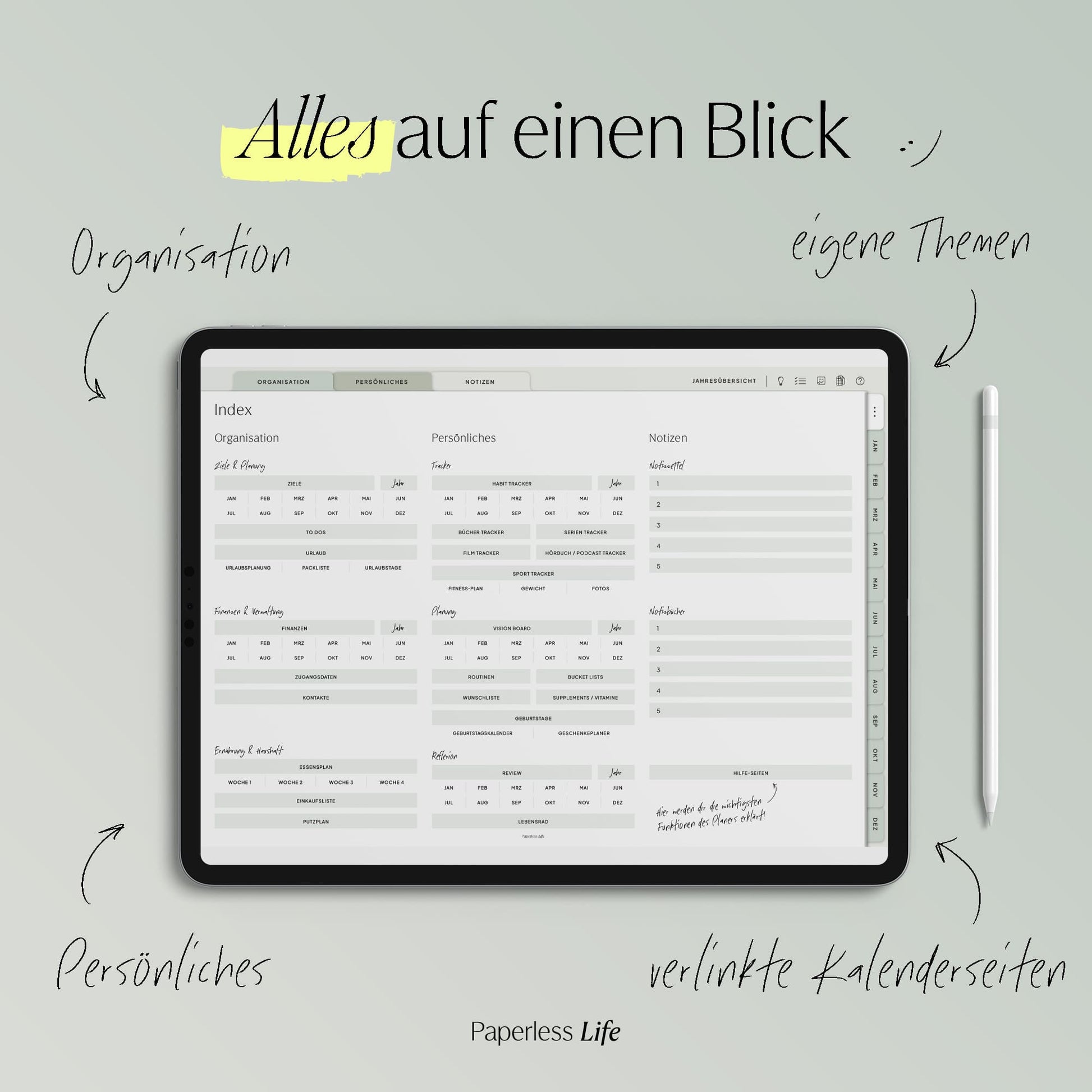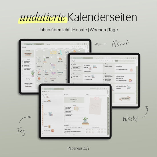 💻 Tablet – Der Planer ist auch auf Laptop/PC und Smartphone nutzbar, jedoch für Tablets optimiert. Dabei muss es kein iPad sein – unsere Planer funktionieren ebenso auf anderen Tablets.
