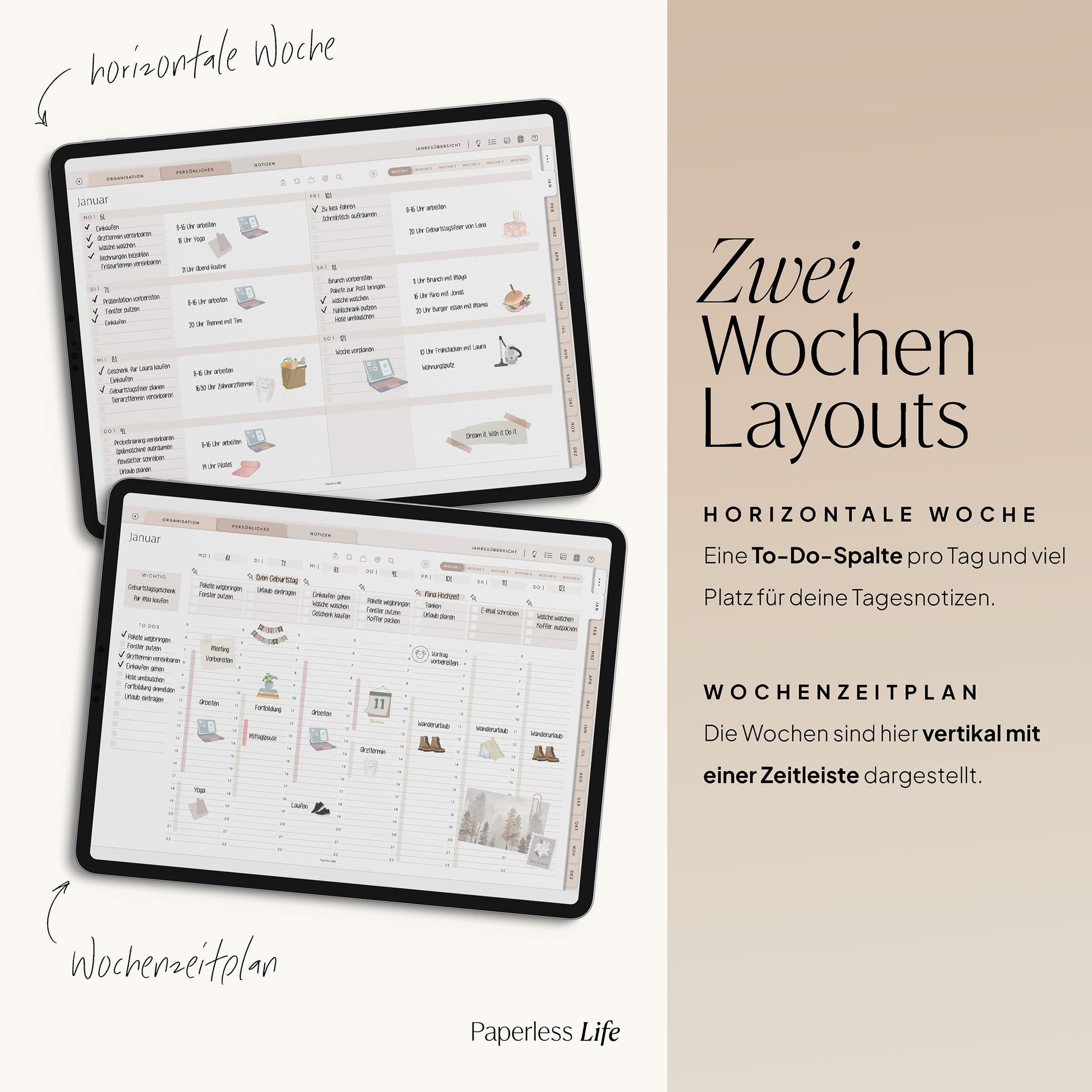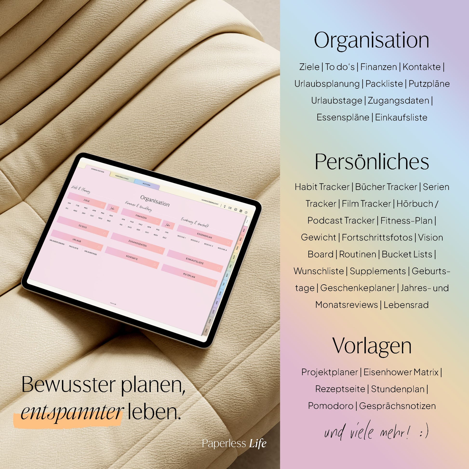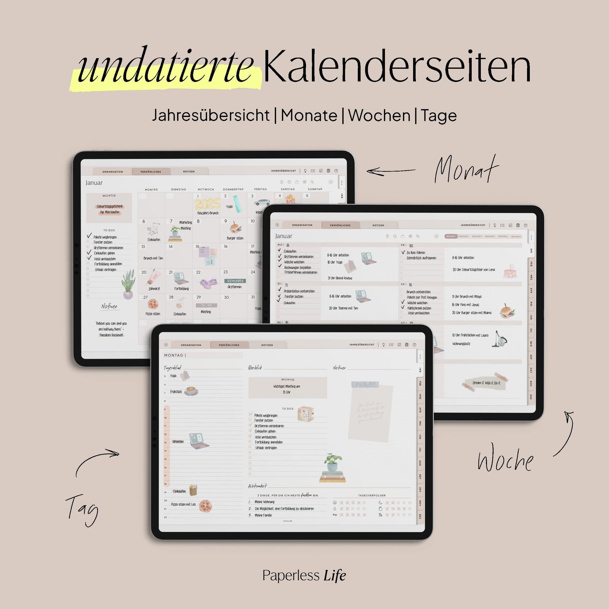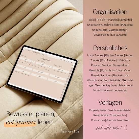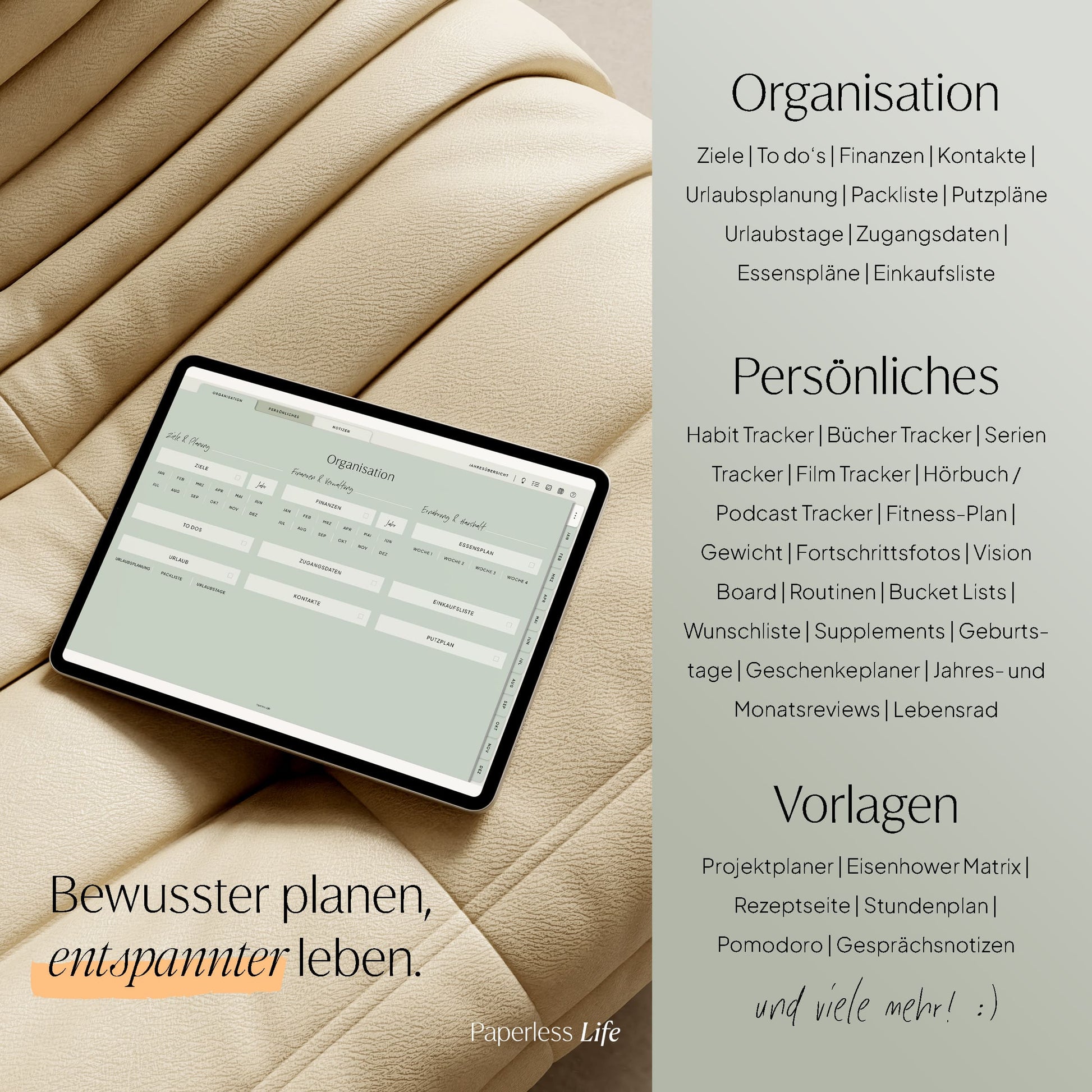 💻 Tablet – Der Planer ist auch auf Laptop/PC und Smartphone nutzbar, jedoch für Tablets optimiert. Dabei muss es kein iPad sein – unsere Planer funktionieren ebenso auf anderen Tablets.