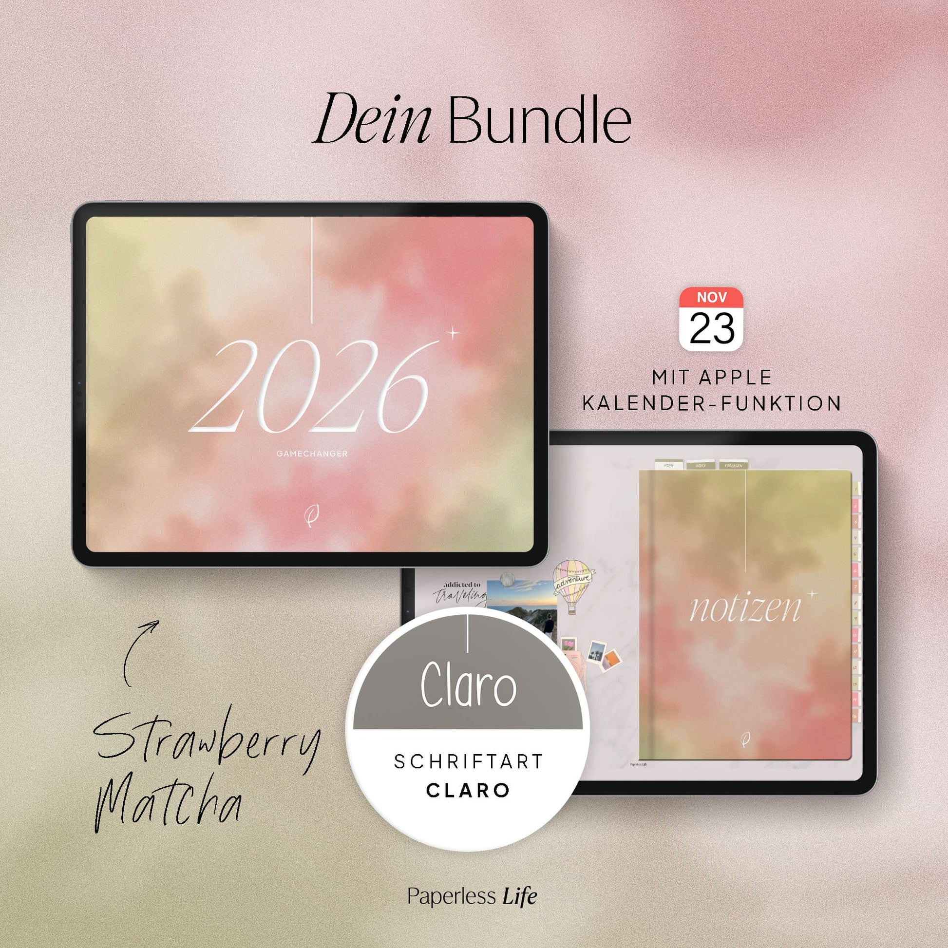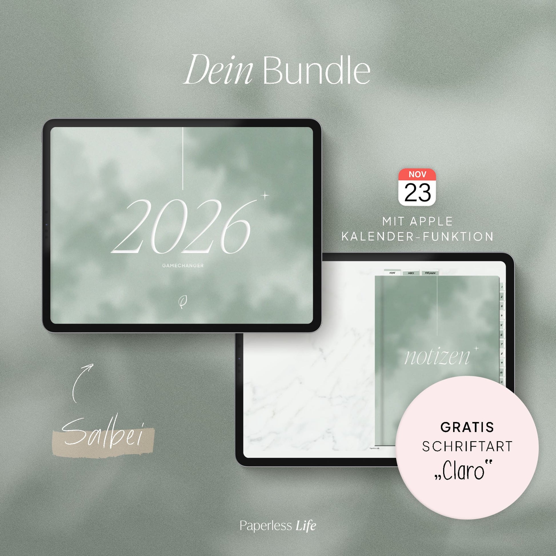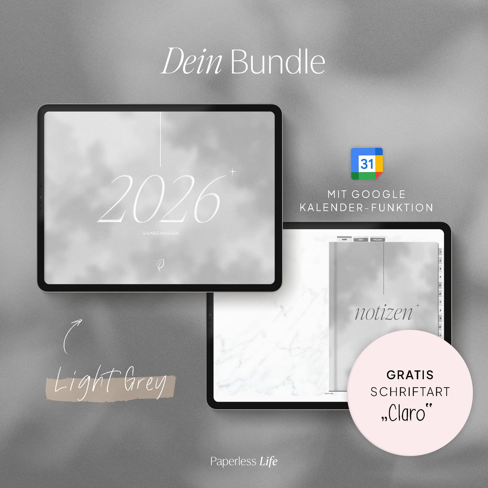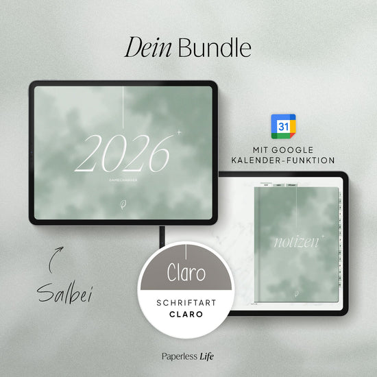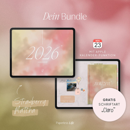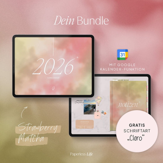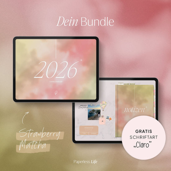 Starte durch mit dem Gamechanger Planer 2026 und dem passenden Notizbuch im gleichen Look. Als Bonus bekommst du unsere Claro-Schriftart gratis dazu – für einen rundum stimmigen Start in dein neues Planerleben.