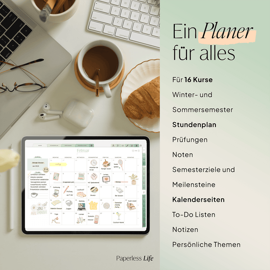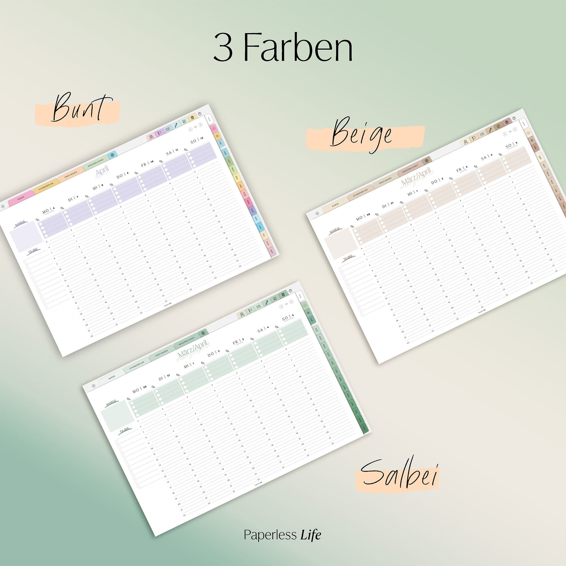 💻 Tablet – Der Planer ist auch auf Laptop/PC und Smartphone nutzbar, jedoch für Tablets optimiert. Dabei muss es kein iPad sein – unsere Planer funktionieren ebenso auf anderen Tablets.