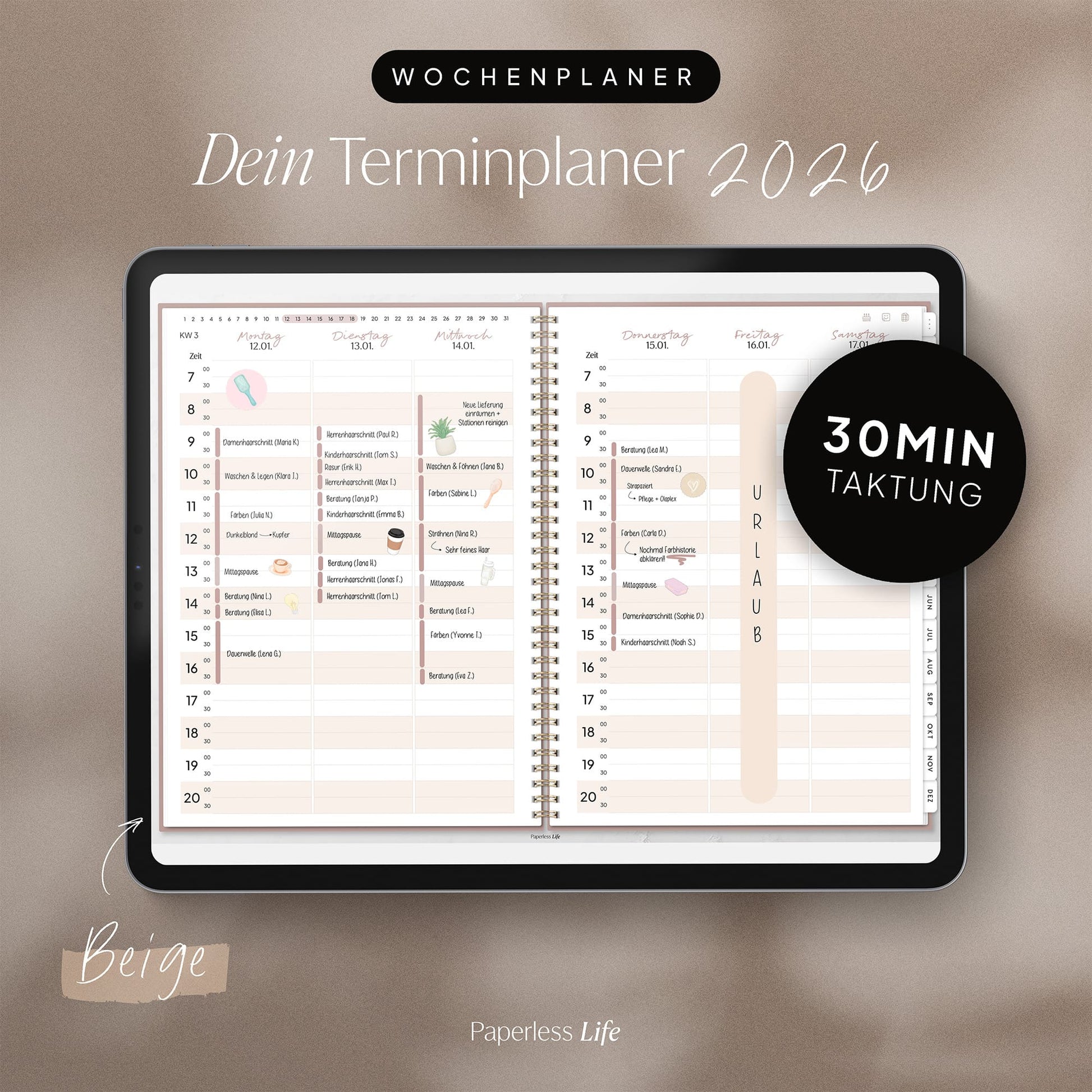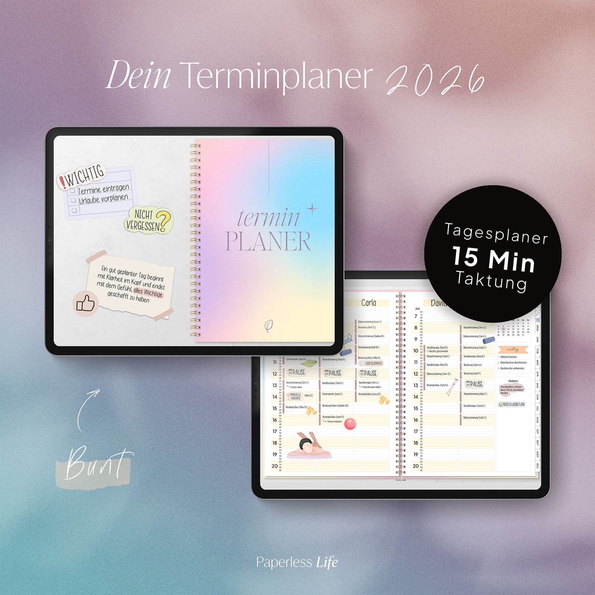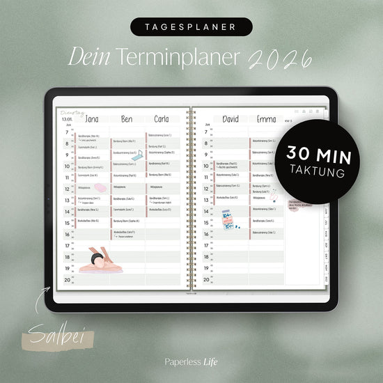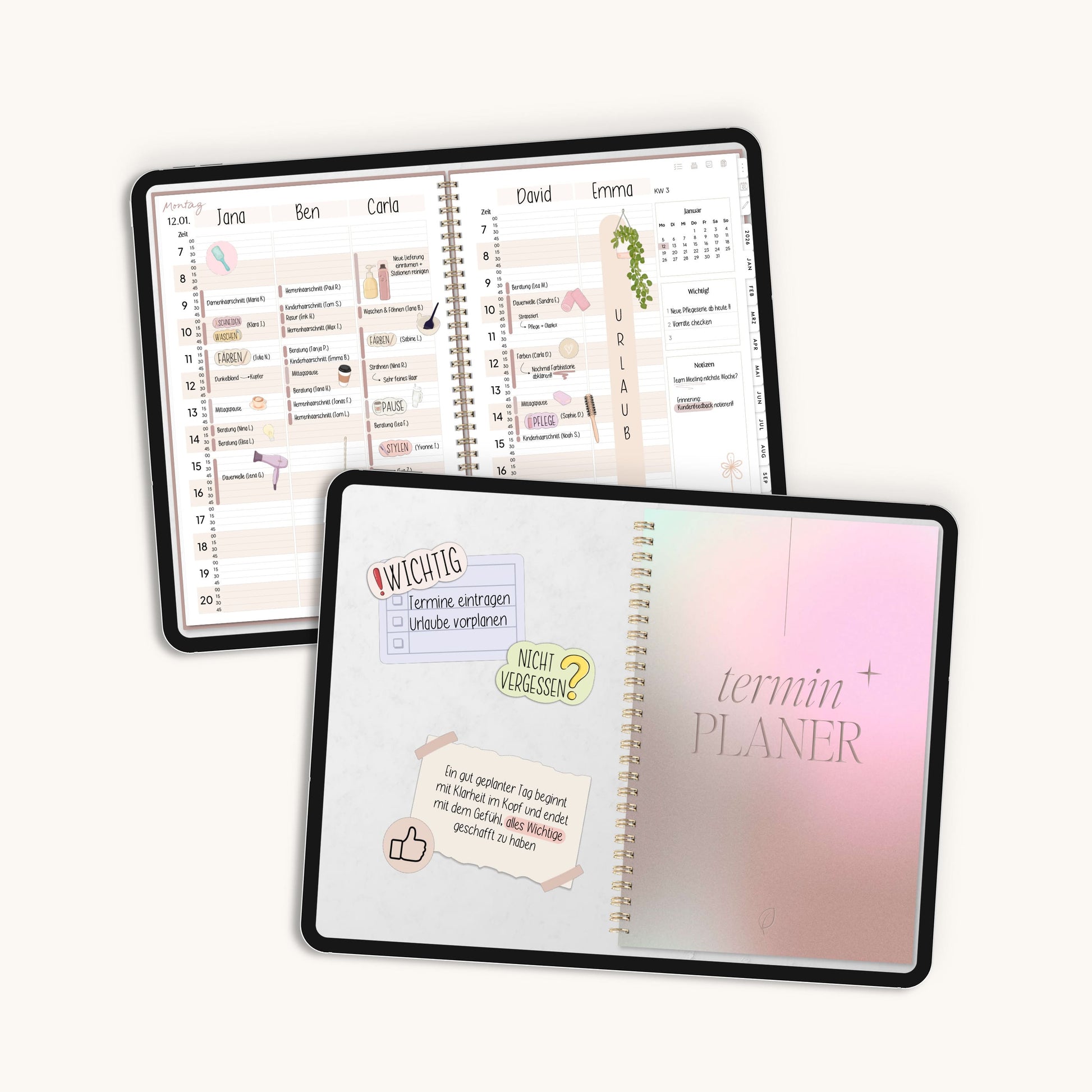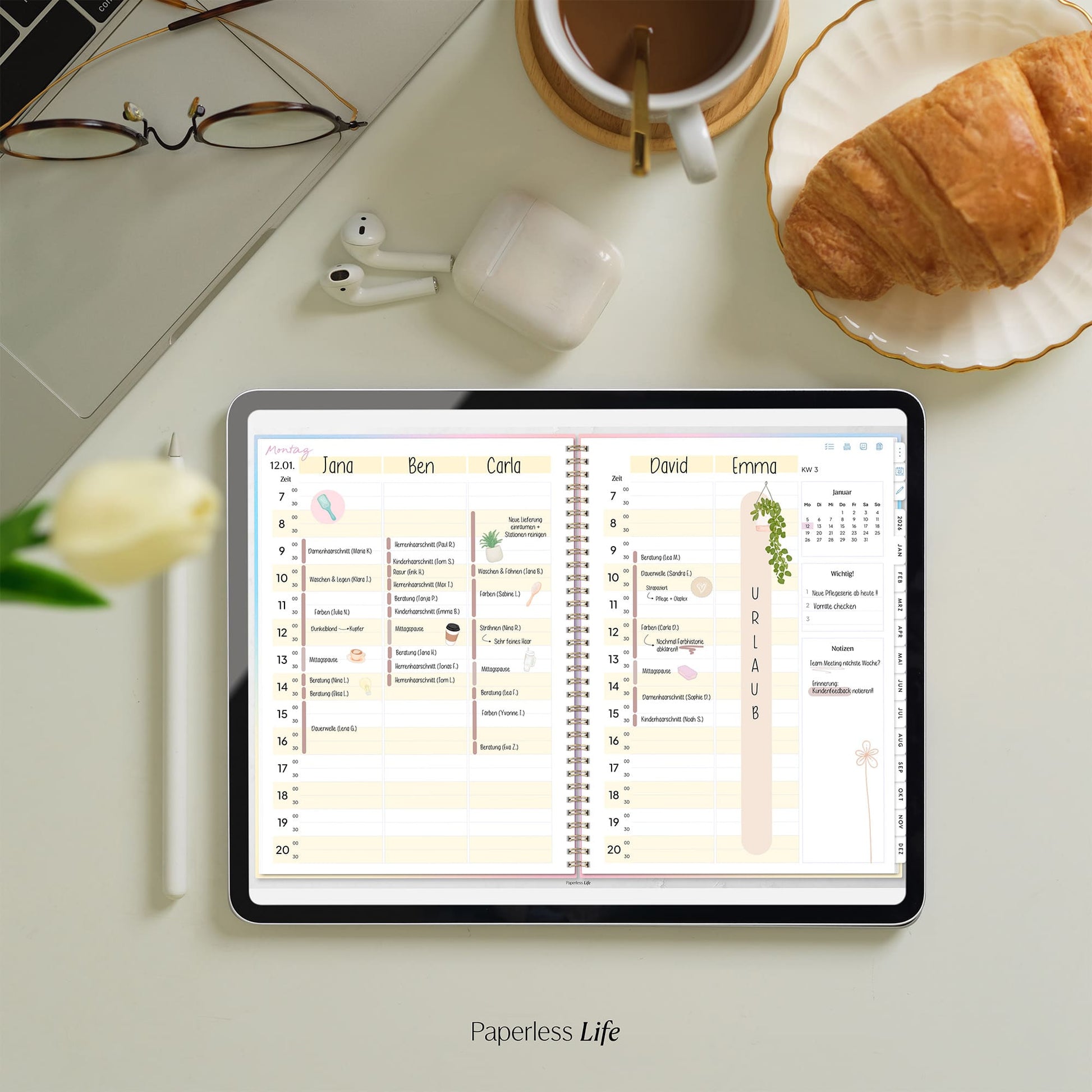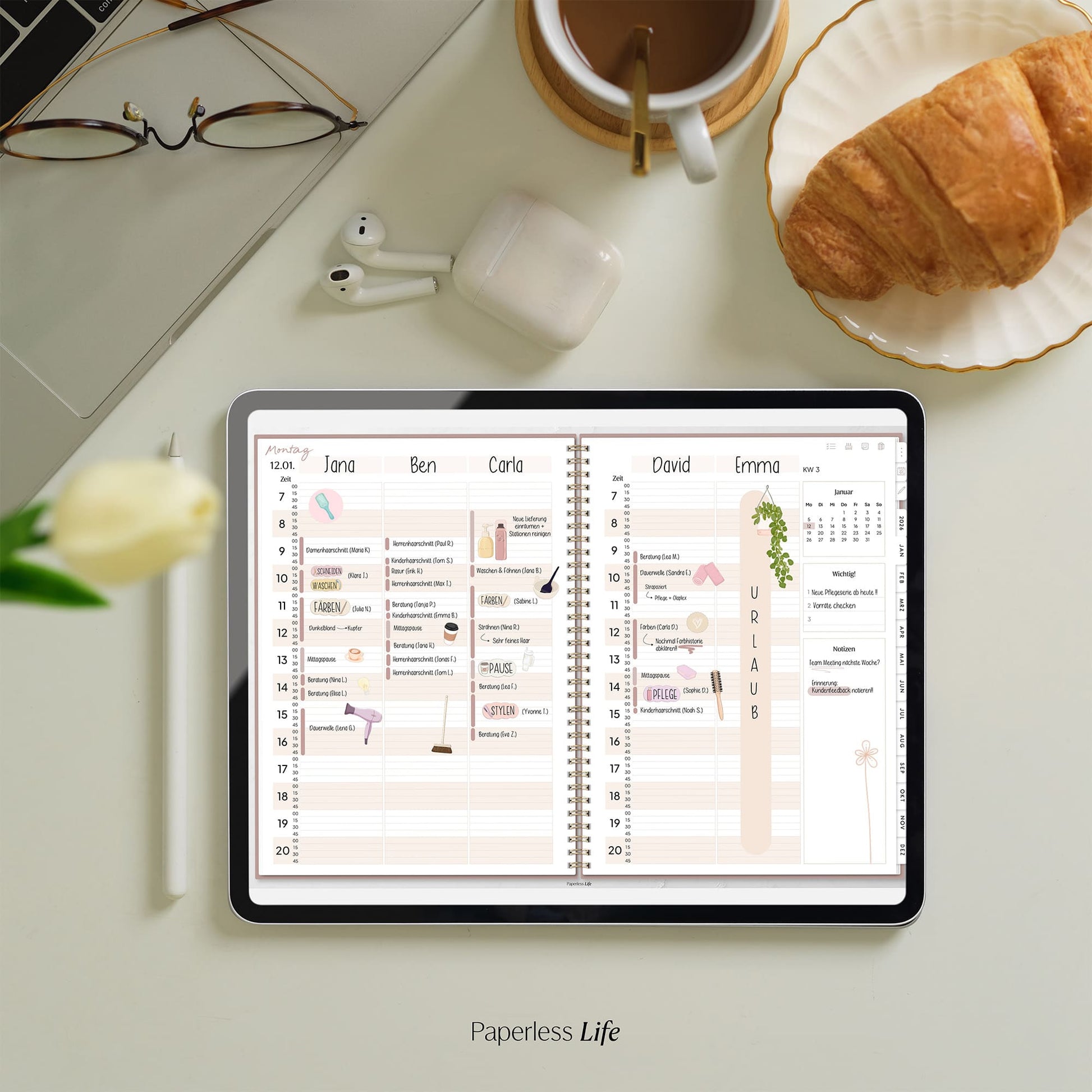 Der digitale Terminplaner 2026 ist dein professionelles Planungstool fürs Tablet. Alle Termine übersichtlich an einem Ort – klar strukturiert, flexibel nutzbar und ideal für Solo-Selbstständige oder kleine Teams bis zu fünf Mitarbeitenden. Kompatibel mit Goodnotes & Co. – für effizientes Arbeiten ohne Papierkram.