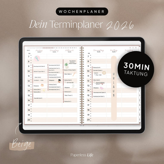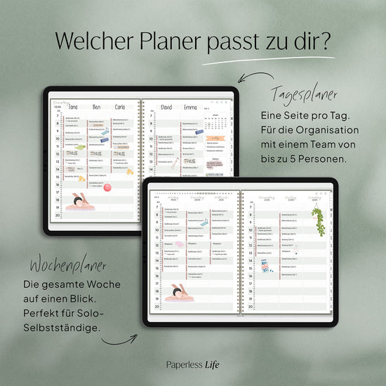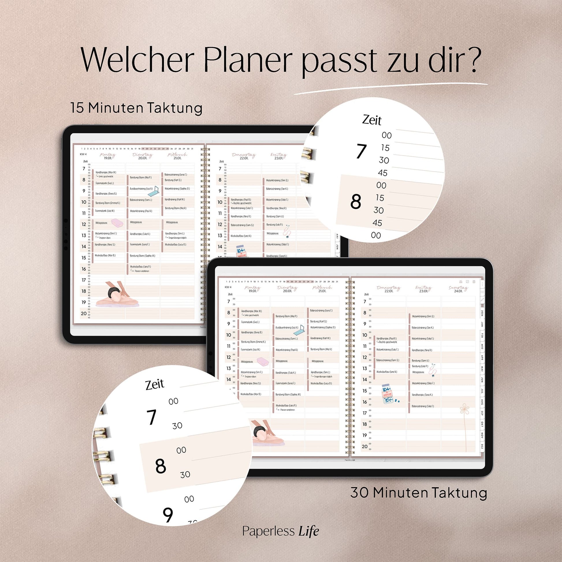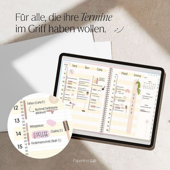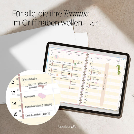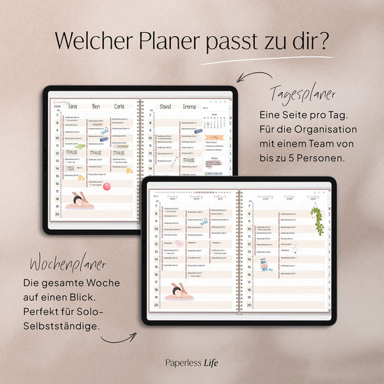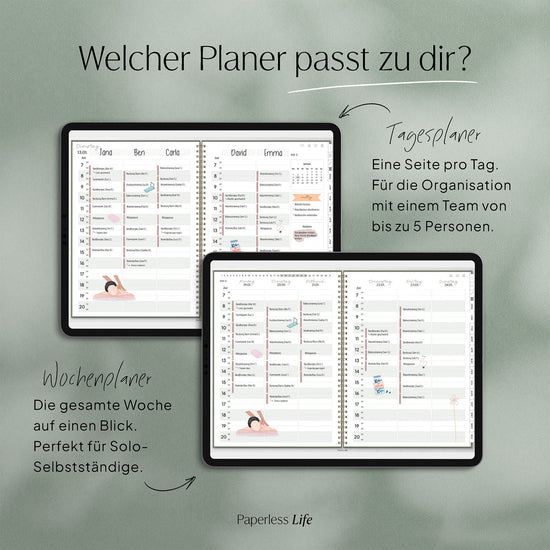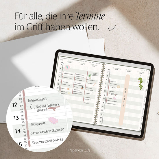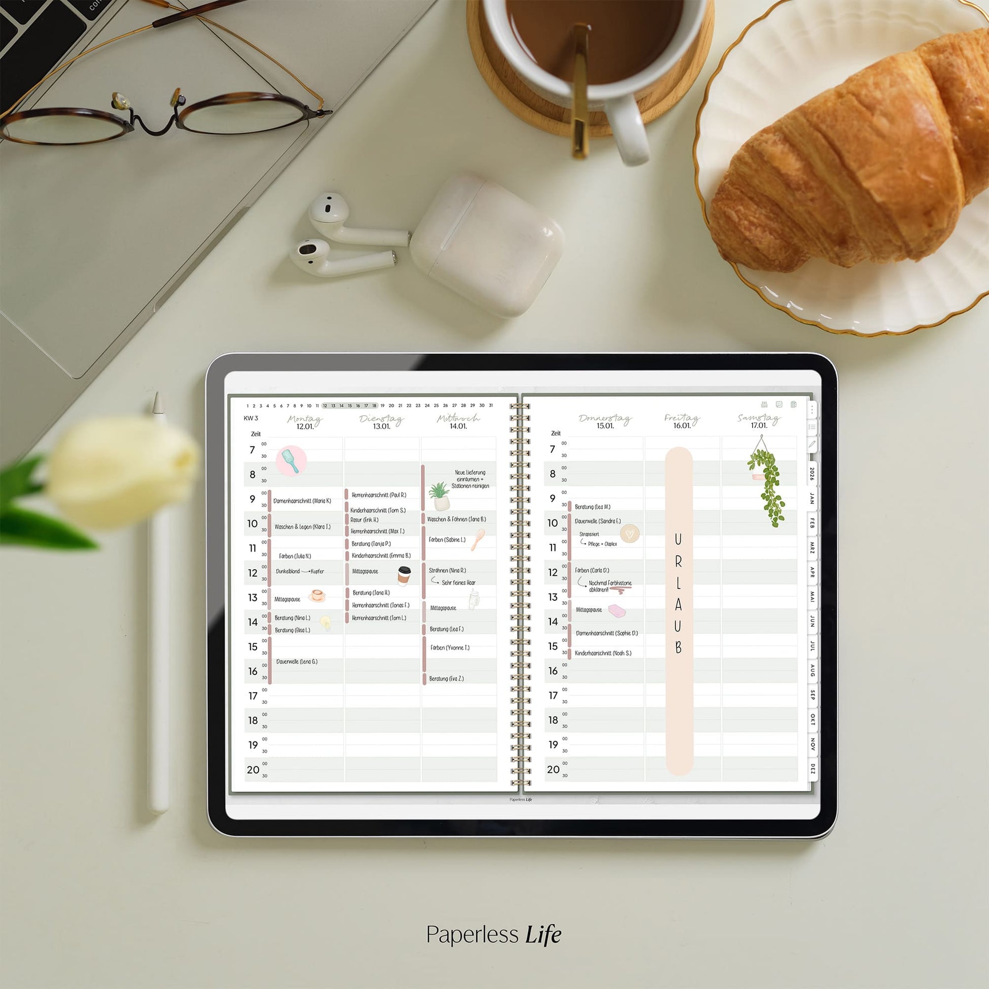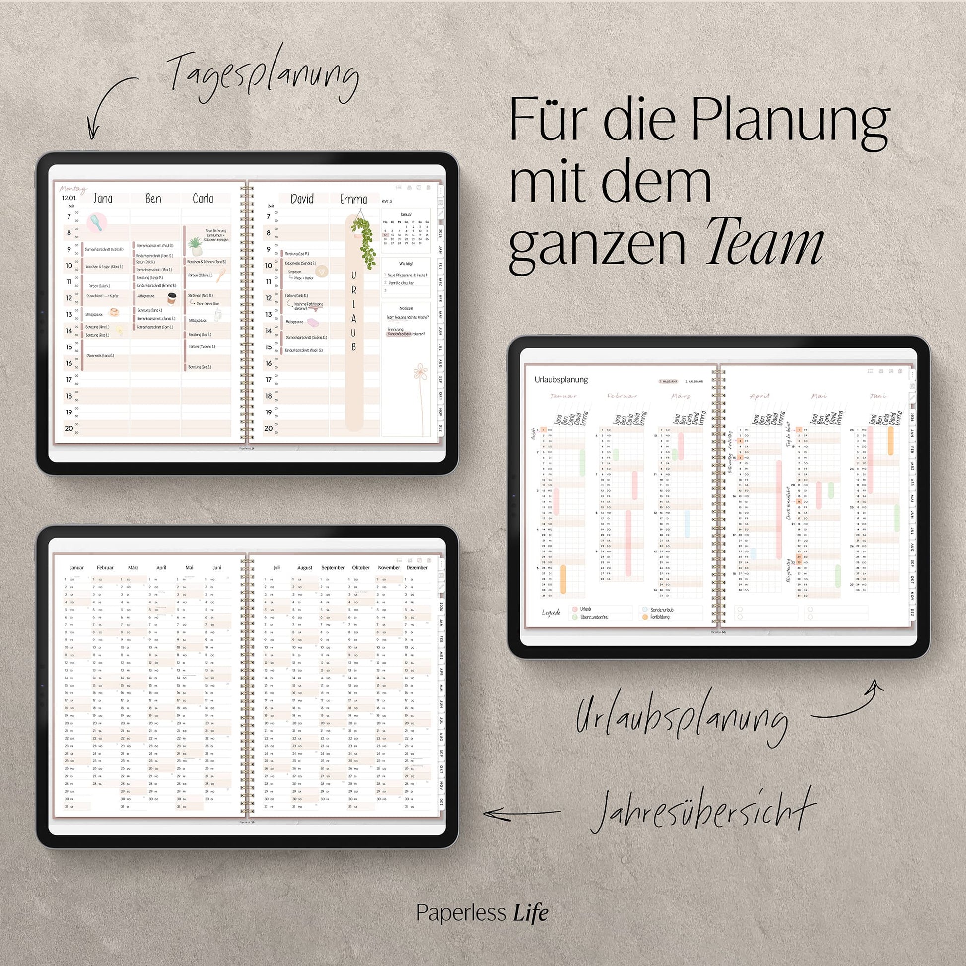 💻 Tablet – Der Planer ist auch auf Laptop/PC und Smartphone nutzbar, jedoch für Tablets optimiert. Dabei muss es kein iPad sein – unsere Planer funktionieren ebenso auf anderen Tablets.