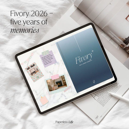 Das Fivory begleitet dich von 2026–2030 – Tag für Tag. Halte Gedanken, Gefühle & besondere Momente fest. Klar strukturiert, minimalistisch & ganz auf dich fokussiert.