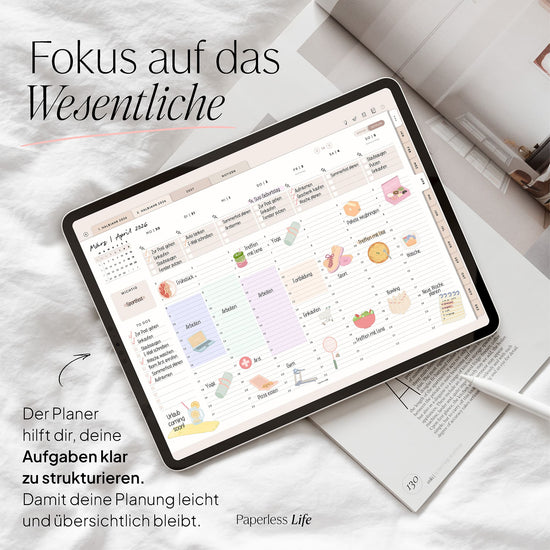 💻 Tablet – Der Planer ist auch auf Laptop/PC und Smartphone nutzbar, jedoch für Tablets optimiert. Dabei muss es kein iPad sein – unsere Planer funktionieren ebenso auf anderen Tablets.