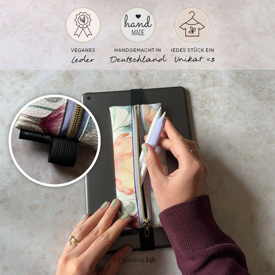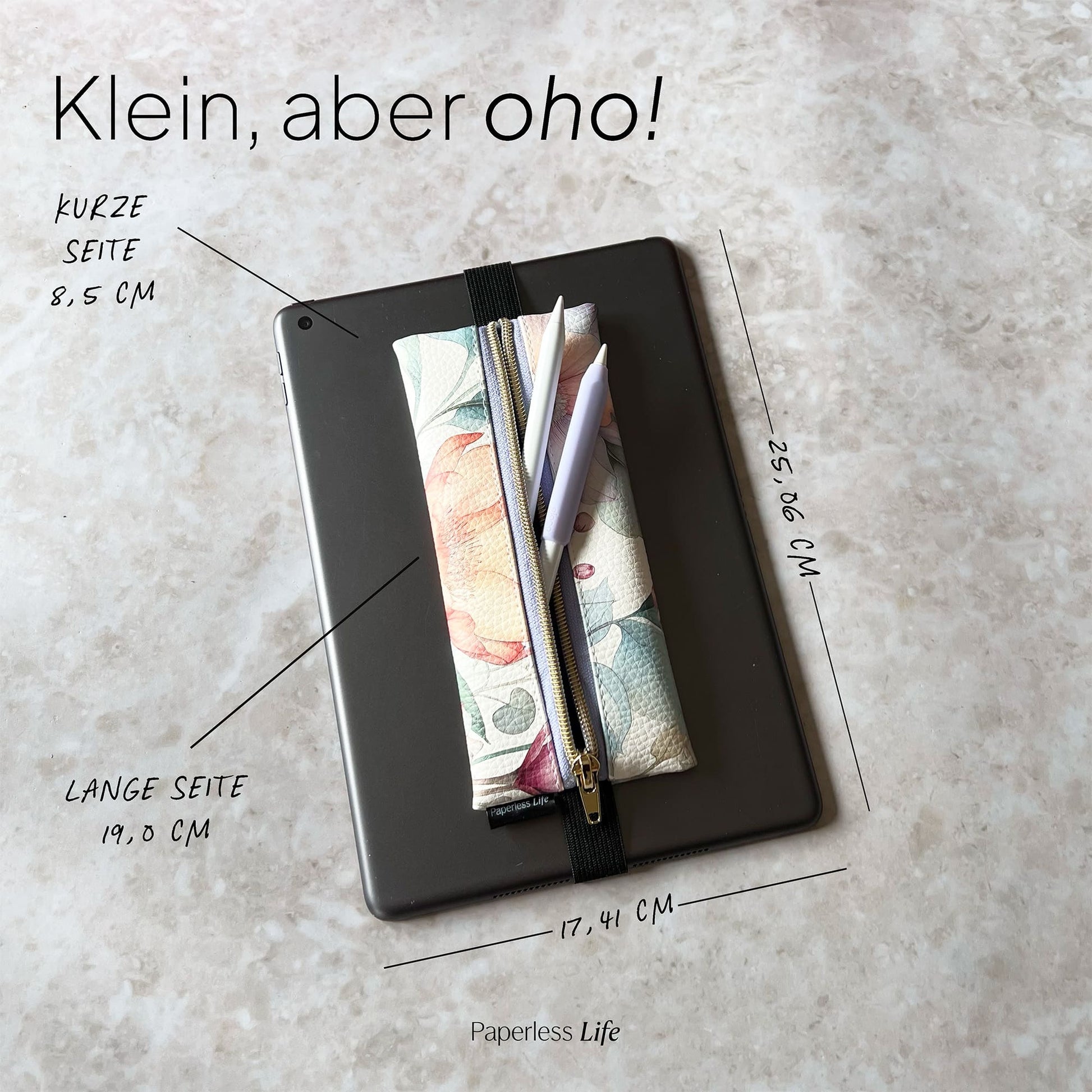 Im Etui ist Platz für deinen Apple Pencil, Samsung S Pen oder andere Stifte bis etwa 18 cm Länge.