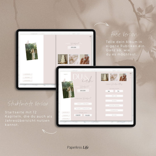 Das Hochzeitsfotoalbum gibt es in zwei Versionen – als strukturierte Version und als freie Version.