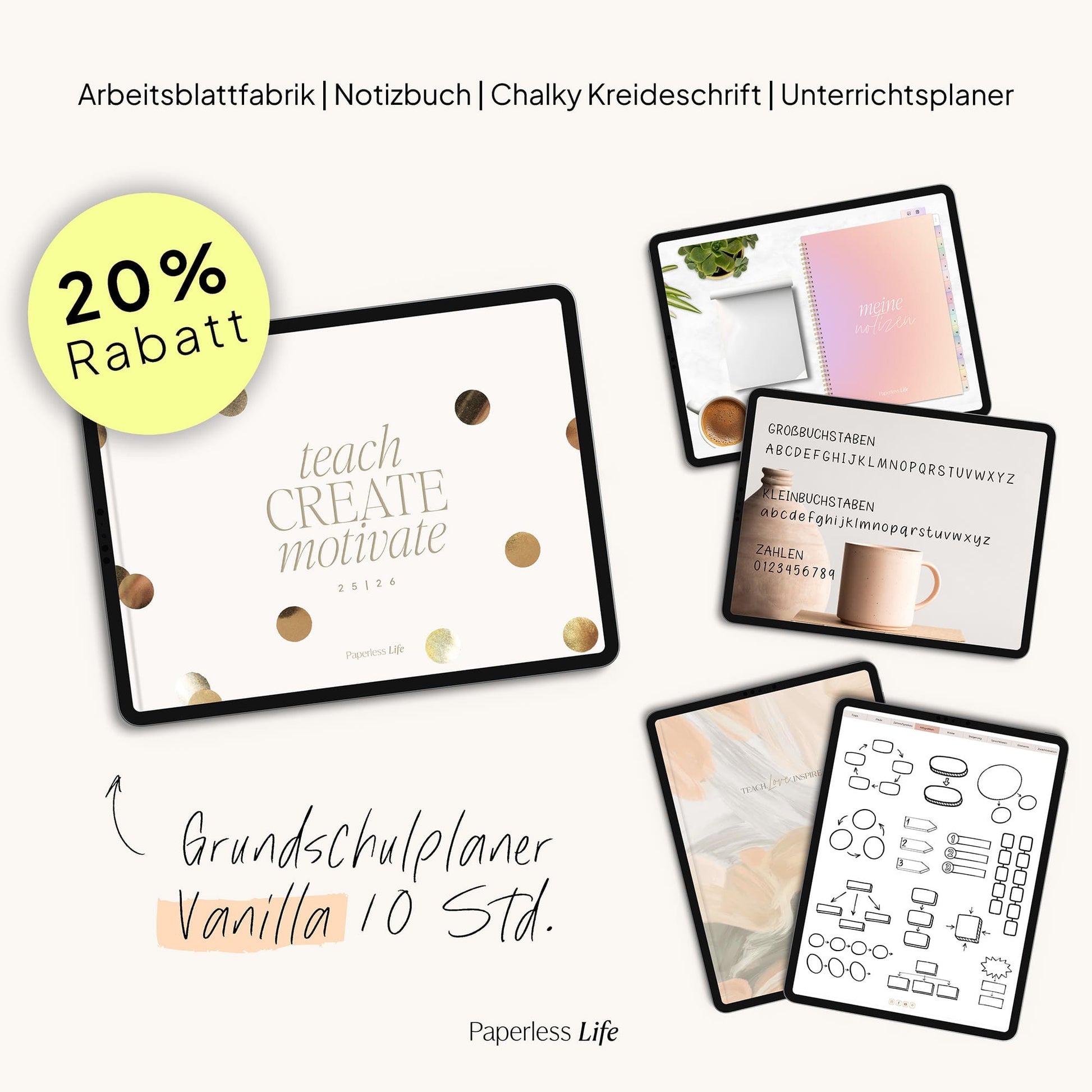 Mit dem Lehrkraft-Bundle Maxi gelingt dir der Einstieg in die digitale Planung spielend leicht. Kein Suchen, kein Chaos.