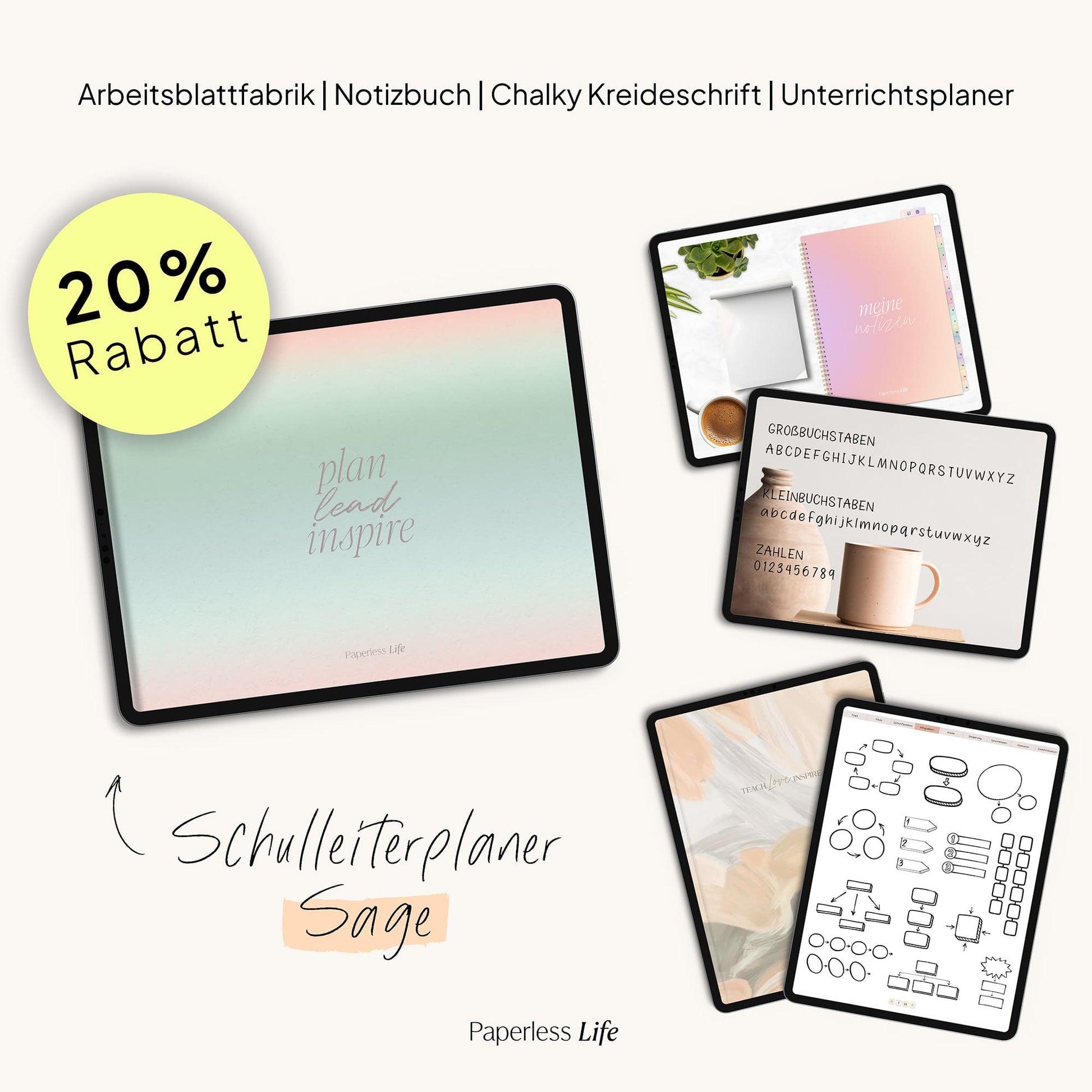 💻 Tablet – Der Planer ist auch auf Laptop/PC und Smartphone nutzbar, jedoch für Tablets optimiert. Dabei muss es kein iPad sein – unsere Planer funktionieren ebenso auf anderen Tablets.