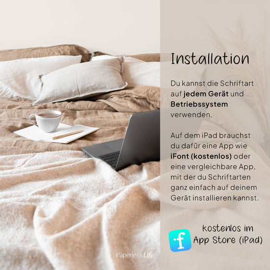 ▸ Hinweis Windows: Aktuell gibt es keine Notizen-App für Windows, die die Installation von eigenen Schriftart zulässt. Du kannst aber die Schriftart auf deinem Windows-Gerät installieren und z.B. in Office-Anwendungen wie Word etc. nutzen.